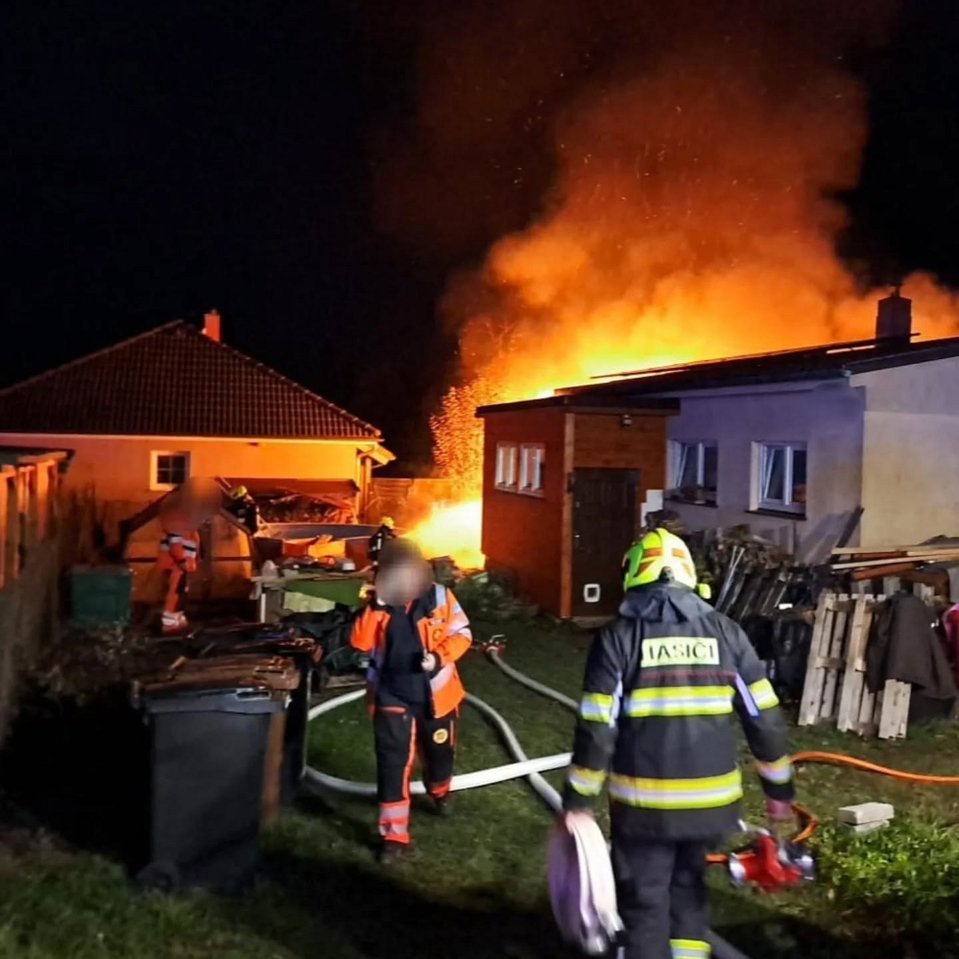 Při požáru dílny v Nové Vsi pod Pleší hasiči vynesli sedm tlakových lahví