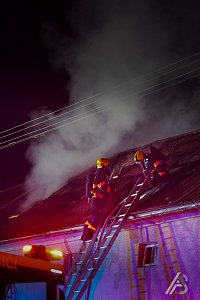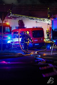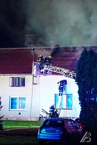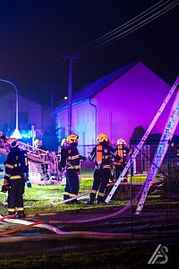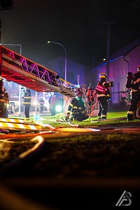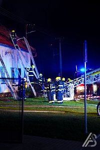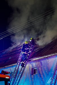 Po příjezdu na místo hasiči zjistili, že je požárem zasažena střecha hospodářské budovy i rodinný dům. Z něj do bezpečí odešli dva lidé. K likvidaci požáru hasiči použili celkem 10 hasebních proudů vody a díky rychlému zásahu měli požár brzy pod kontrolou a uchránili druhý rodinný dům, který se nacházel v sousedství.