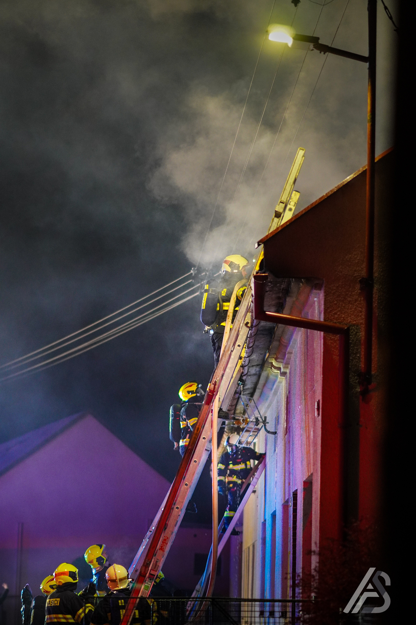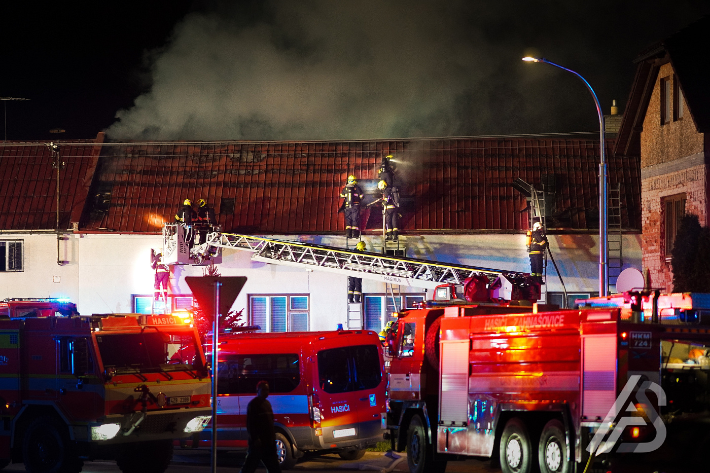 Po příjezdu na místo hasiči zjistili, že je požárem zasažena střecha hospodářské budovy i rodinný dům. Z něj do bezpečí odešli dva lidé. K likvidaci požáru hasiči použili celkem 10 hasebních proudů vody a díky rychlému zásahu měli požár brzy pod kontrolou a uchránili druhý rodinný dům, který se nacházel v sousedství.