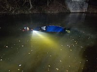 Řidič byl lehce zraněn. Vozidlo vyprostila potápěčská skupina s využitím vyprošťovacího automobilu. Kvůli proražené olejové vaně byla nasazena norná stěna, kterou hasiči dále kontrolují.