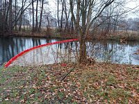 V katastru Pardubic v místní části Drozdice zasahují profesionální hasiči z centrální hasičské stanice u dopravní nehody osobního vozidla, které skončilo po nehodě v řece Chrudimce.