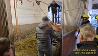 Hasiči ze stanice Plzeň Košutka a hasiči SDH Horní Bříza vyjeli na padlého ustájeného koně v boxu – statek Trnová – Vísky.