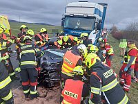 Tragická dopravní nehoda osobního vozidla a kamionu uzavřela silnici I/35 v katastru obce Václavice