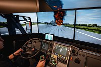 Ta je doplněna o osmimetrový projekční systém se třemi projektory, který poskytuje 210° panoramatický výhled. Výcvik tak působí téměř totožně jako reálná jízda.