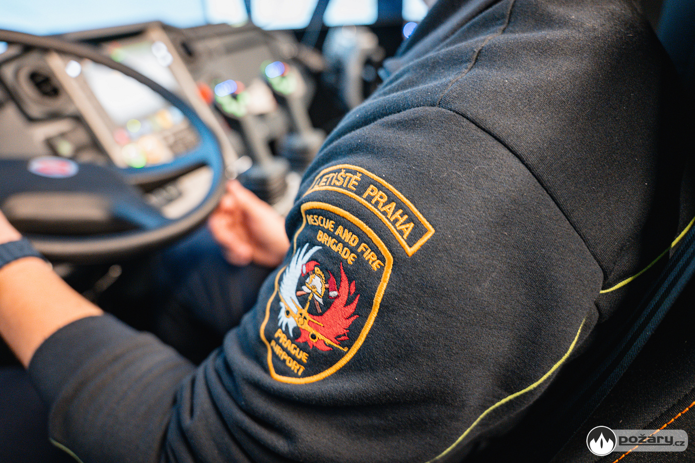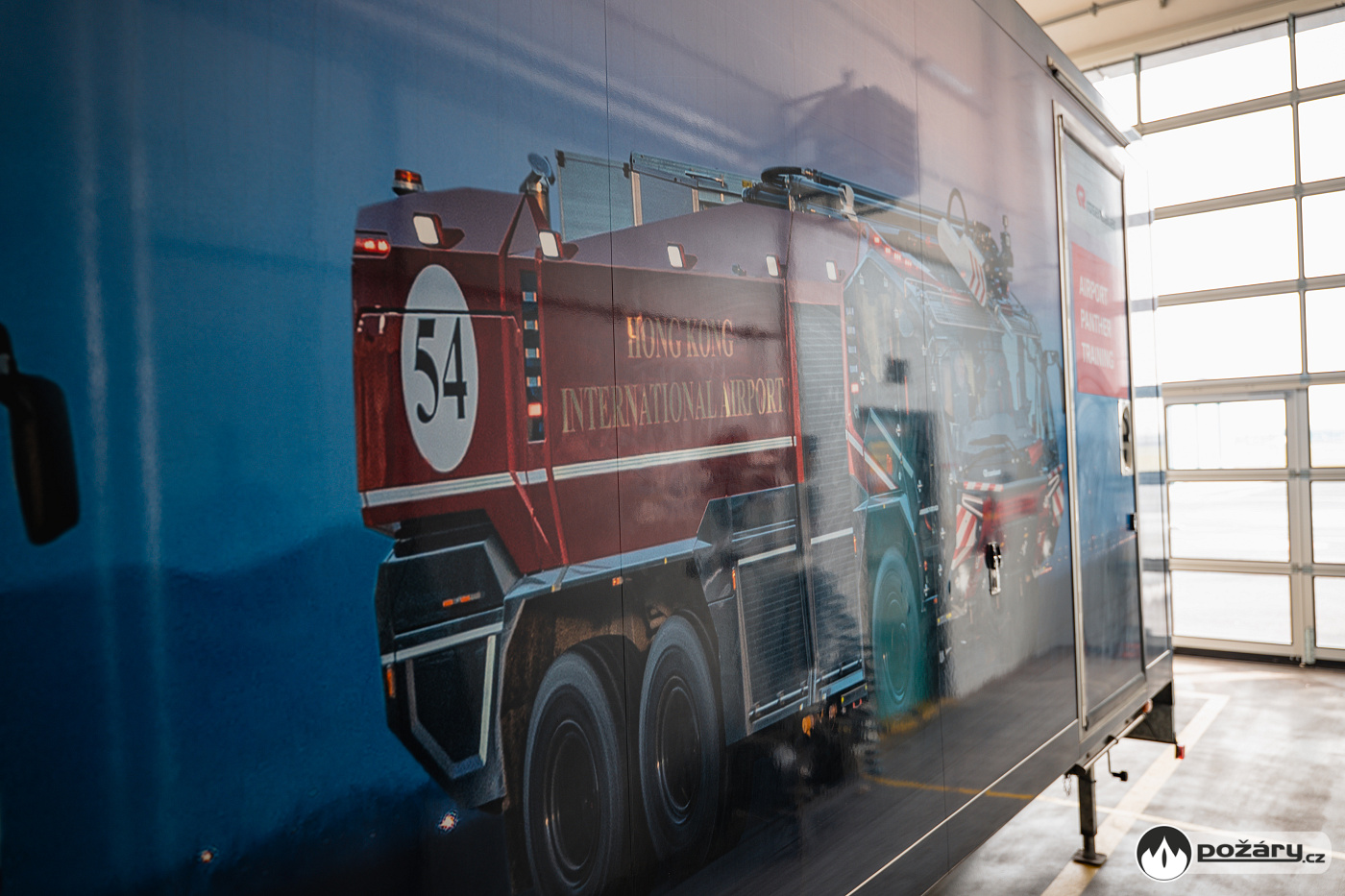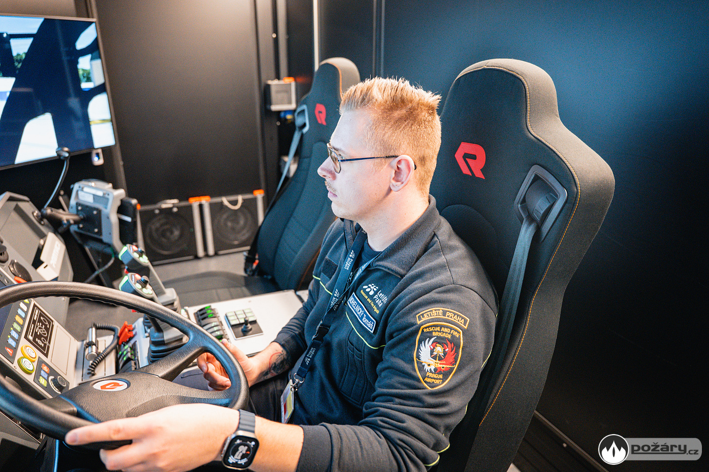 Hasiči na letišti v Praze cvičili na trenažéru simulujícím obsluhu speciálu Rosenbauer Panther