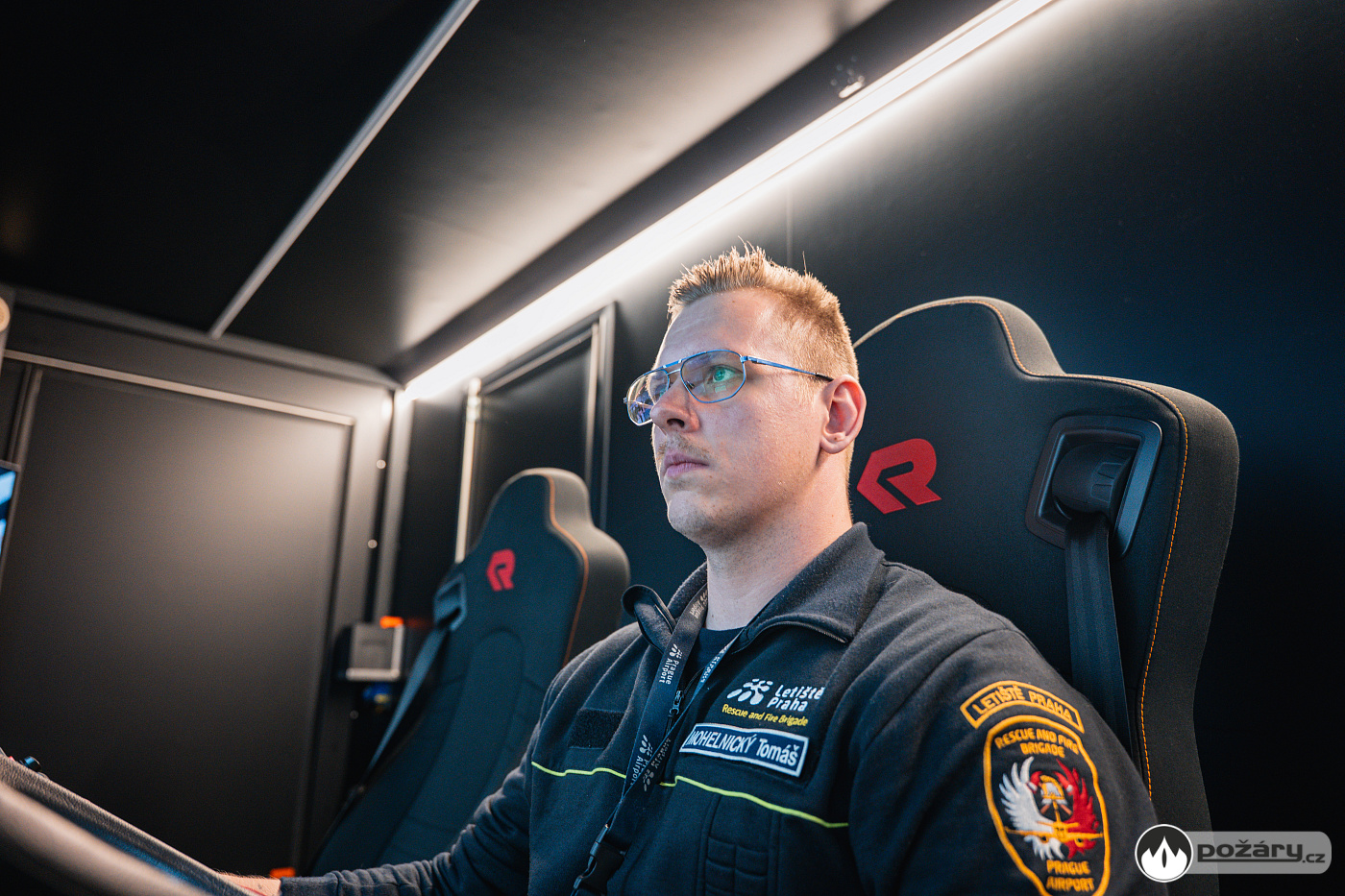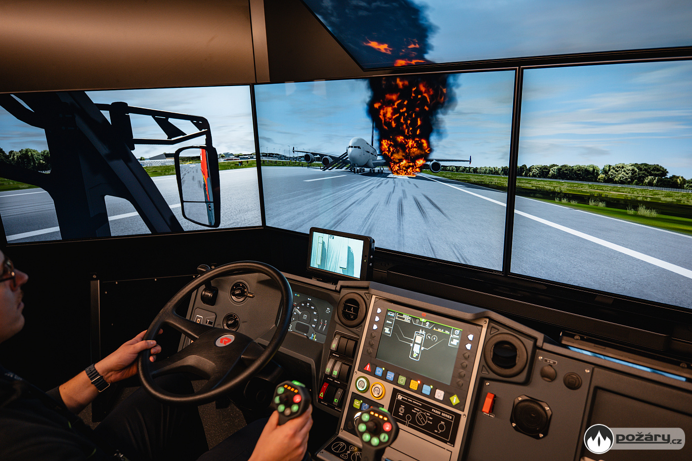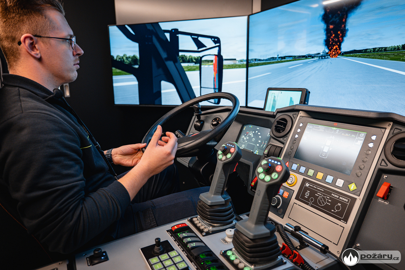 Ovládání letištního hasičského speciálu Rosenbauer Panther patří mezi nejnáročnější úkoly, které mohou hasiči na letišti vykonávat. Hasiči se ho učí ovládat i virtuálně.