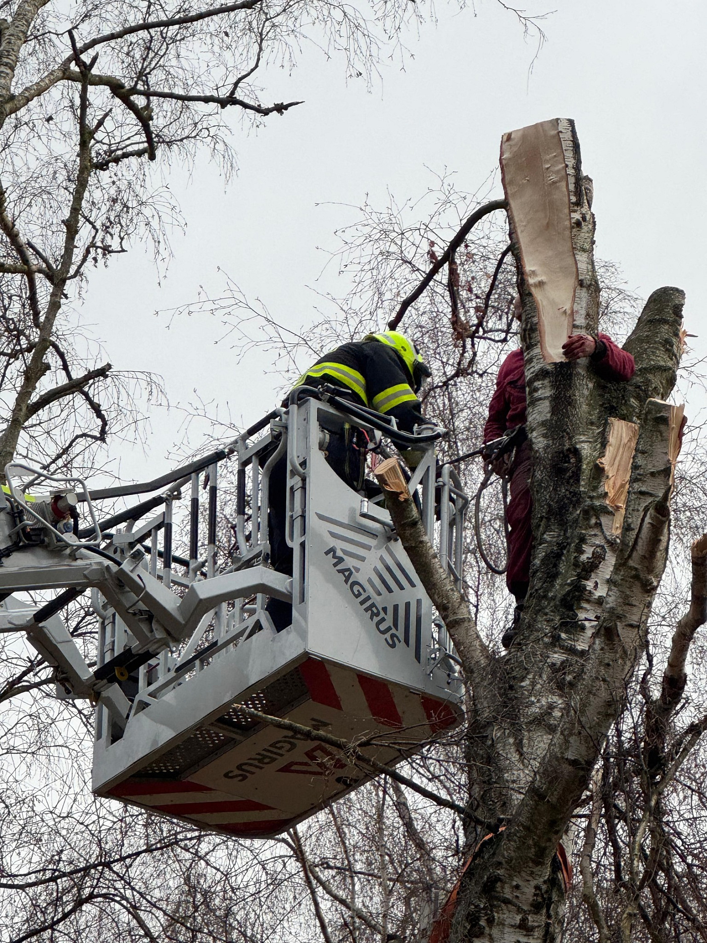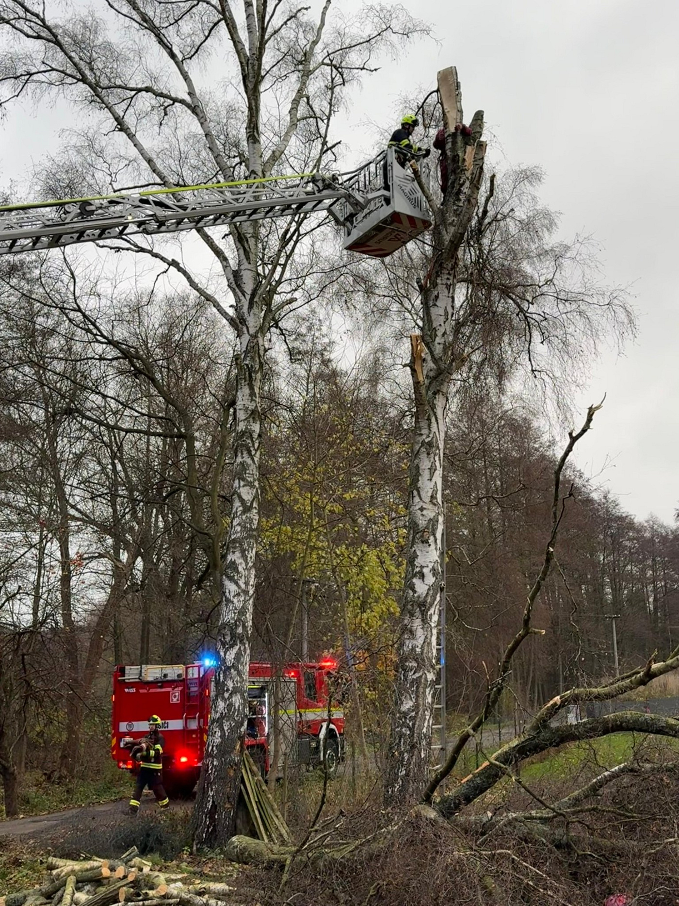 Krátce před patnáctou hodinou došlo ve Varnsdorfu k nebezpečné situaci při kácení stromu. Muž provádějící kácení se nešťastně zachytil ve větvích a zůstal viset na stromě několik metrů nad zemí.