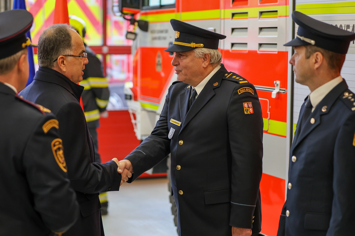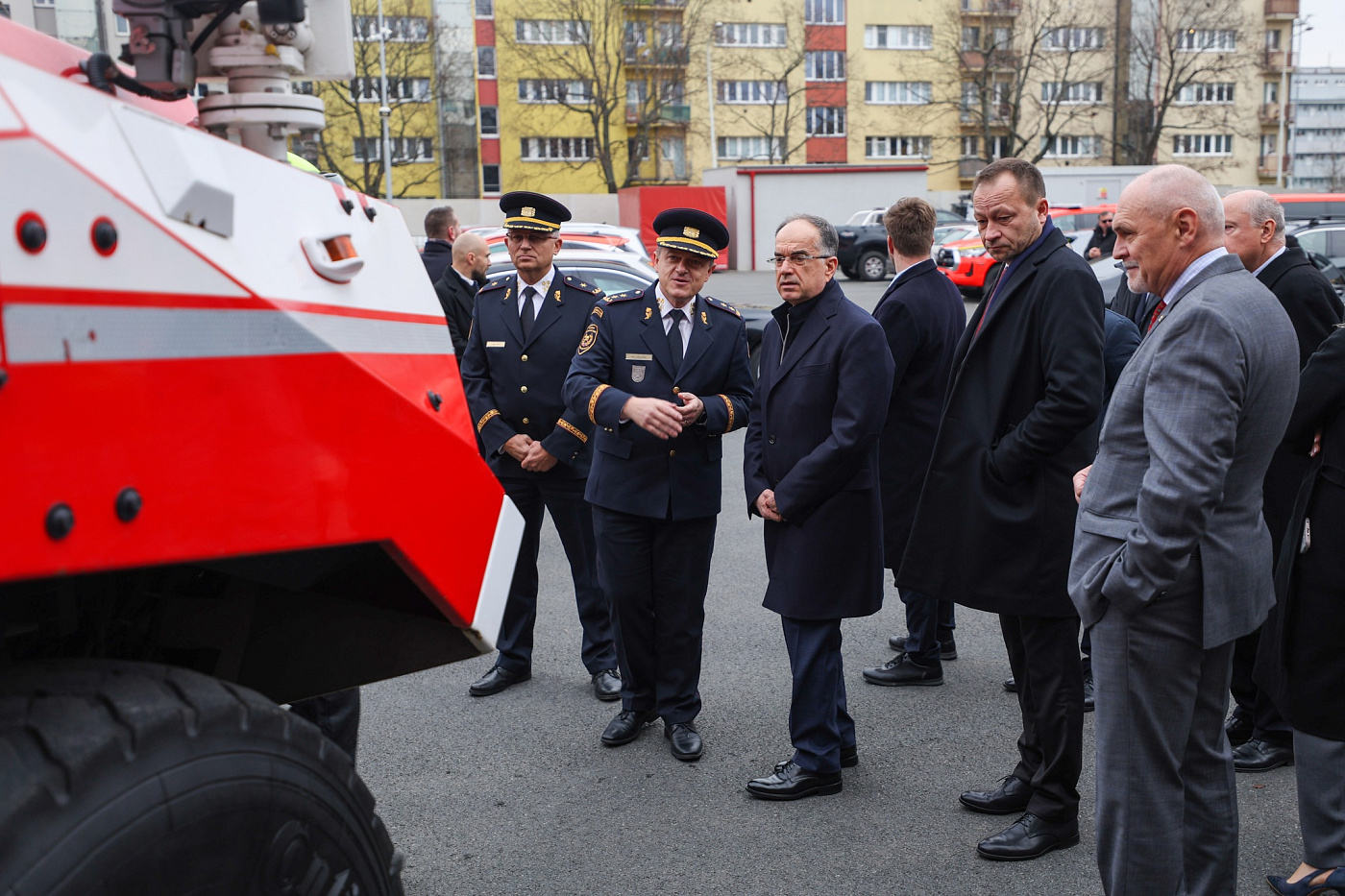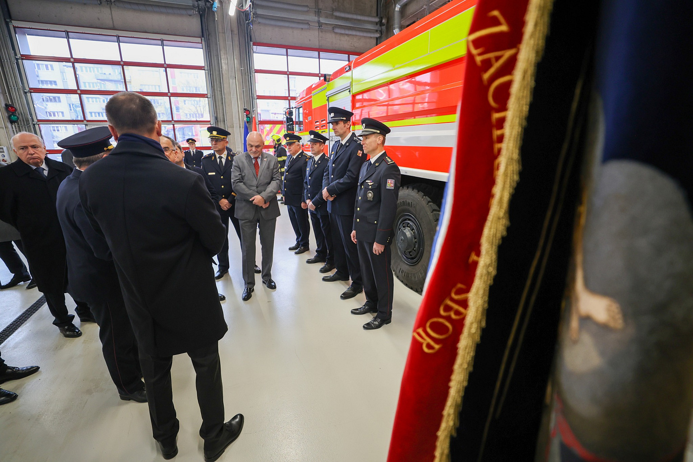 Na místě byl přivítán náměstkem generálního ředitele Hasičského záchranného sboru České republiky generálmajorem Ing. Petrem Ošlejškem, Ph.D., a ředitelem Hasičského záchranného sboru hlavního města Prahy brigádním generálem Ing. Luďkem Prudilem.