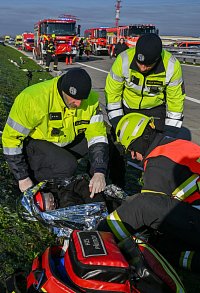 Kromě hromadné nehody se museli hasiči, záchranáři i policisté vypořádat s velkým množstvím zraněných osob a poskytnout jim pomoc. Situace, s níž se hasiči na frekventovaných dálnicích v praxi pravidelně setkávají. Aby naše jednotky byly připravené na všechny možné alternativy a nástrahy při záchranných a likvidačních pracích, připravujeme taktická cvičení právě s touto tématikou.