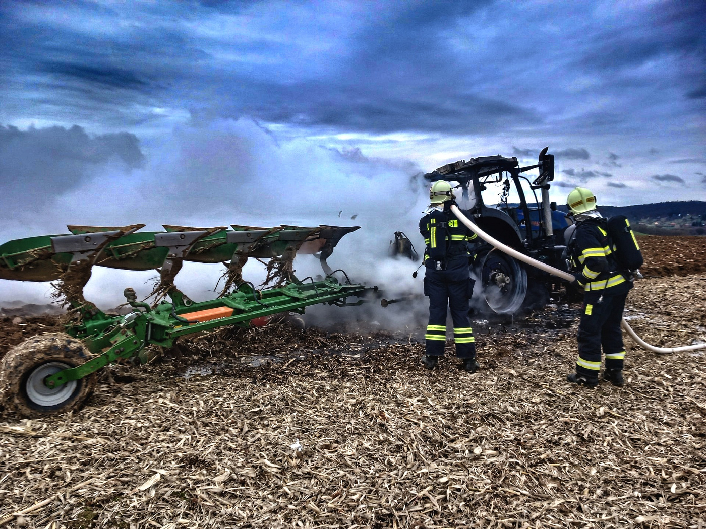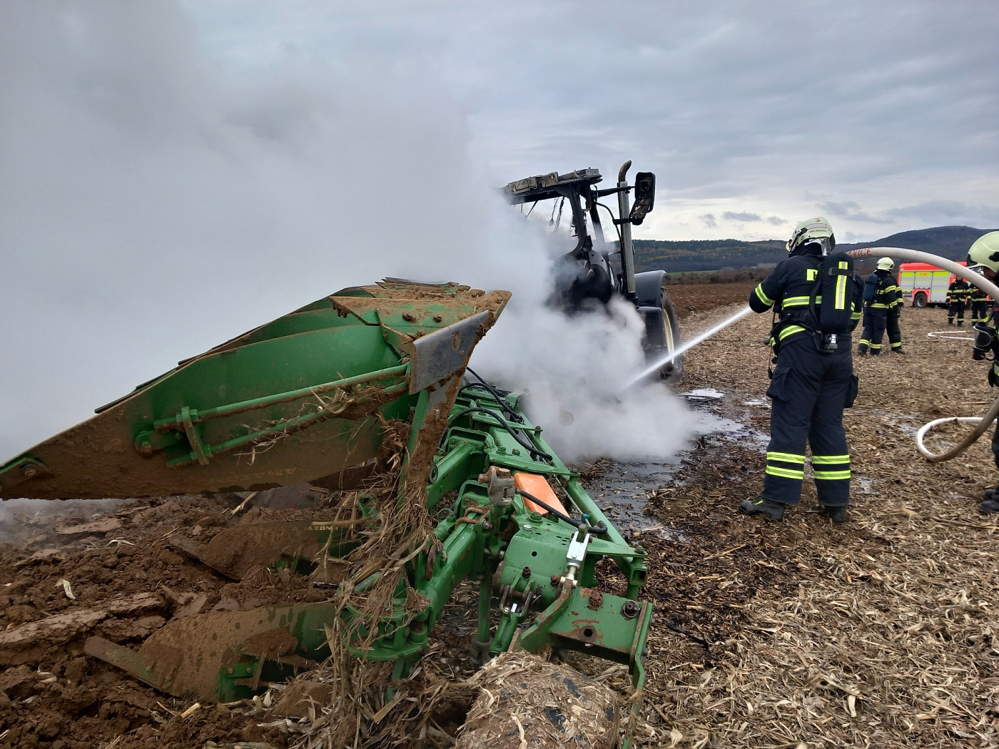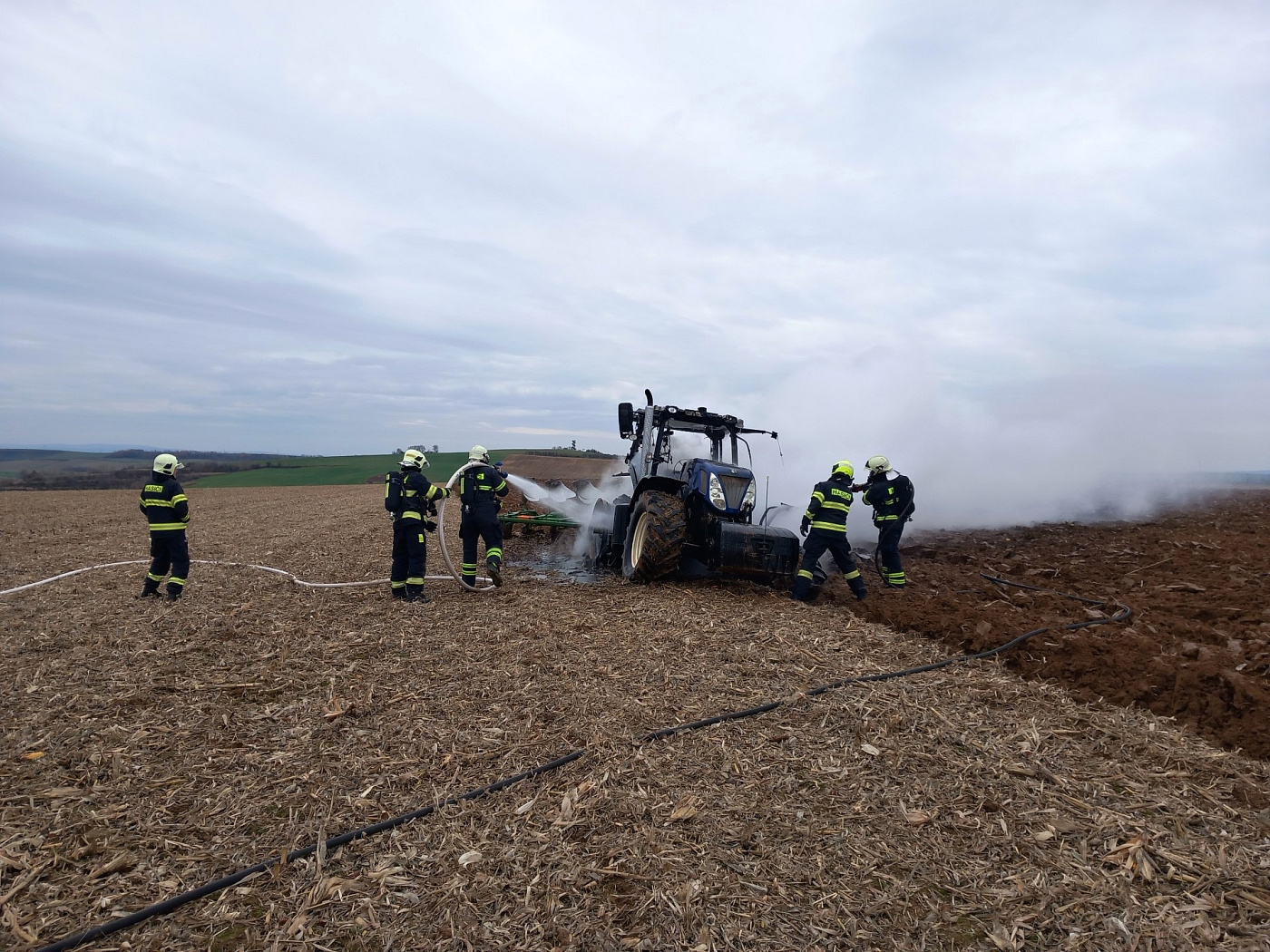 Ve Skalce na Hodonínsku zlikvidovala profesionální jednotka hasičů z Kyjova spolu s dobrovolnou jednotkou z Žeravic požár traktoru.