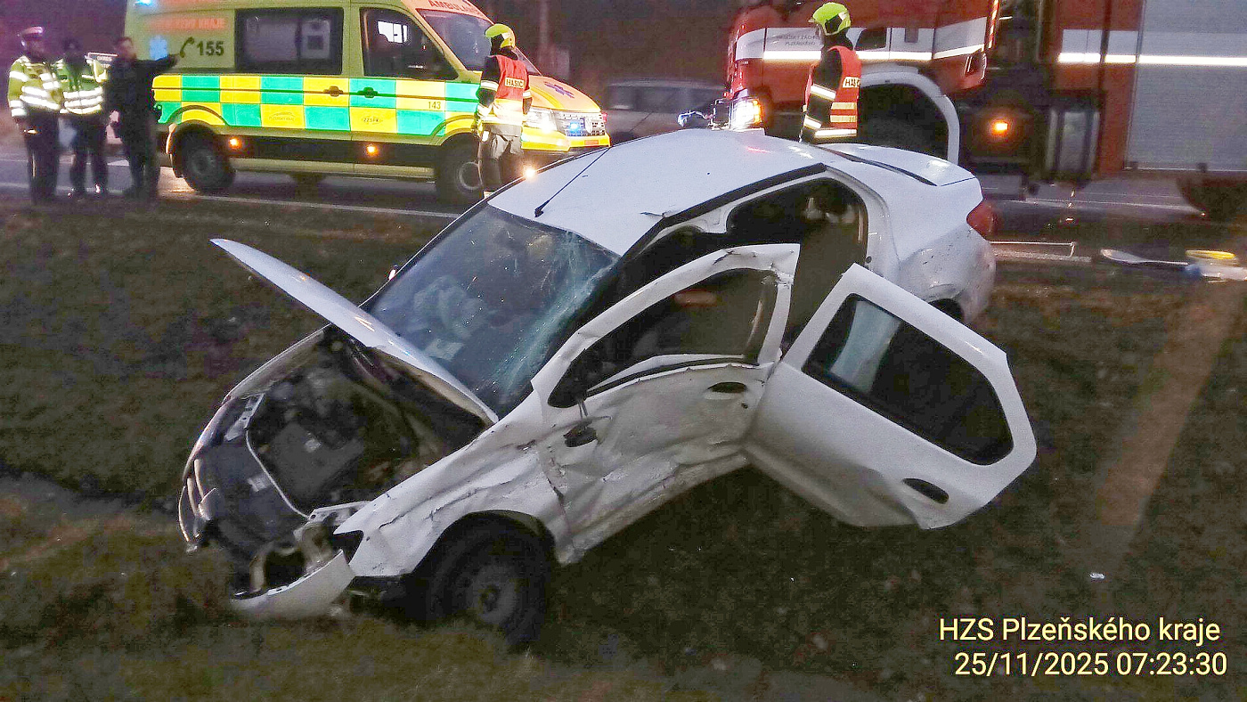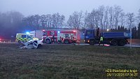 Jednotka z Přeštic vyjela na dopravní nehodu jednoho osobního a nákladního vozidla na silnici č. 27 mezi obcemi Borovy a Červené Poříčí. Na místě byly dvě zraněné osoby. Osobní vozidlo skončilo mimo komunikaci.