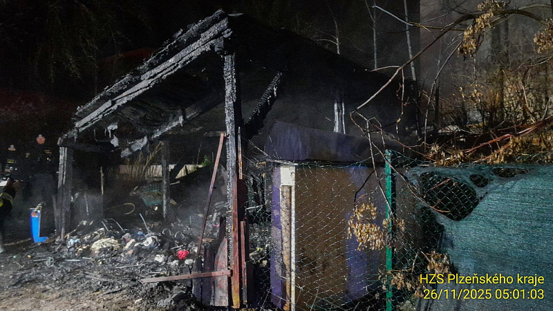 Požár dřevěného přístřešku v Plzni se obešel se bez zranění