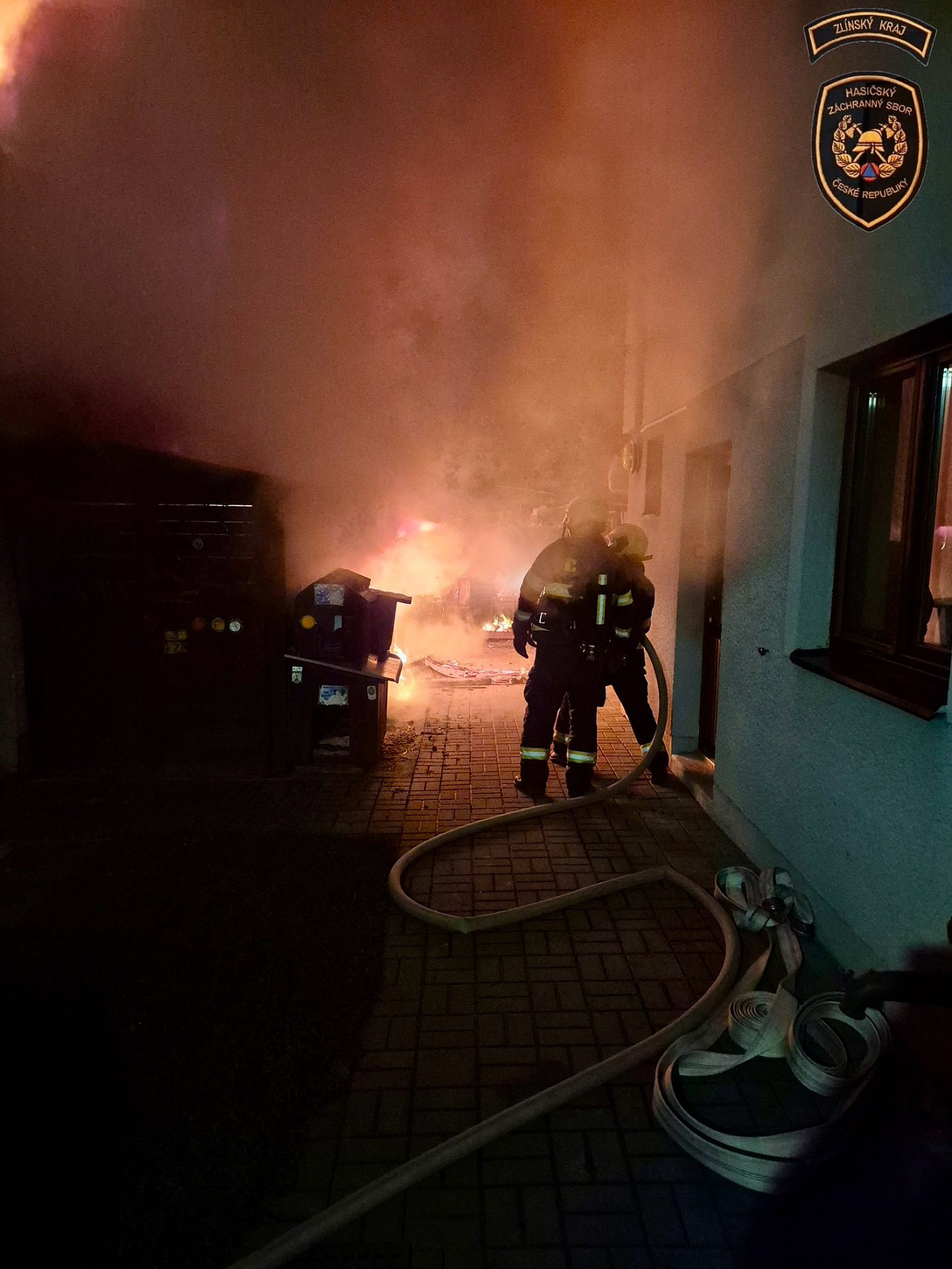 K nočnímu požáru garáže a přístavku v Brumově-Bylnici vyjely čtyři jednotky hasičů