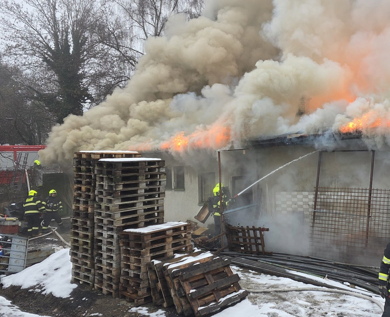 Jednotky ve druhém stupně požárního poplachu zasahují v Novém Boru u požáru zahradnictví. Hasiči nasadili celkem čtyři útočné proudy C, hasí také z výškové techniky. V objektu by se neměl nikdo nacházet.