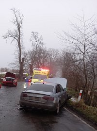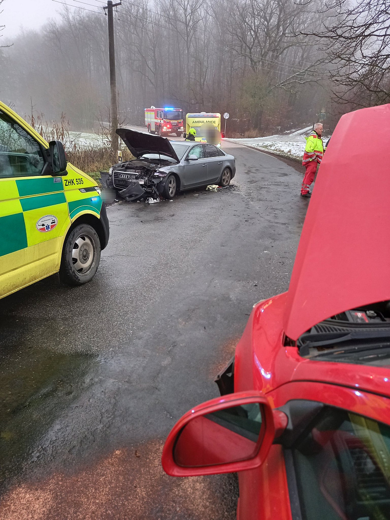Dvě jednotky hasičů zasahovaly u dopravní nehody dvou osobních vozidel ve Velkém Vřešťově