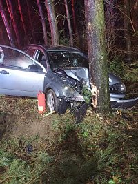 Tři osoby cestovaly v osobním autě, které havarovalo okolo půl šesté u Křižanova. Zdravotníci ošetřovali celkem dvě zraněné osoby, milevští profesionální hasiči pomohli jedné z nich z auta do sanitky. Zároveň provedli u auta protipožární opatření a kontrolu úniku provozních látek.