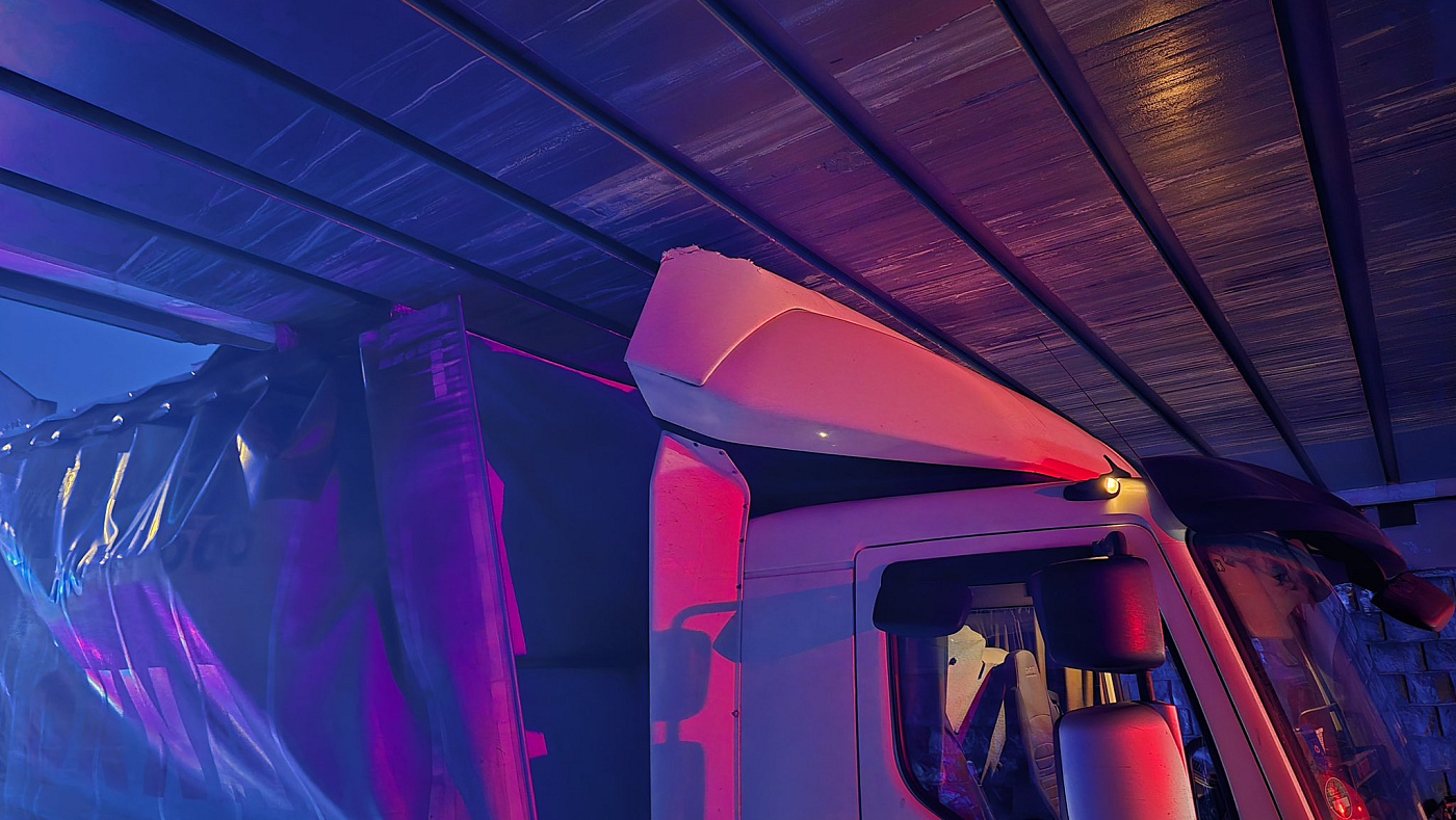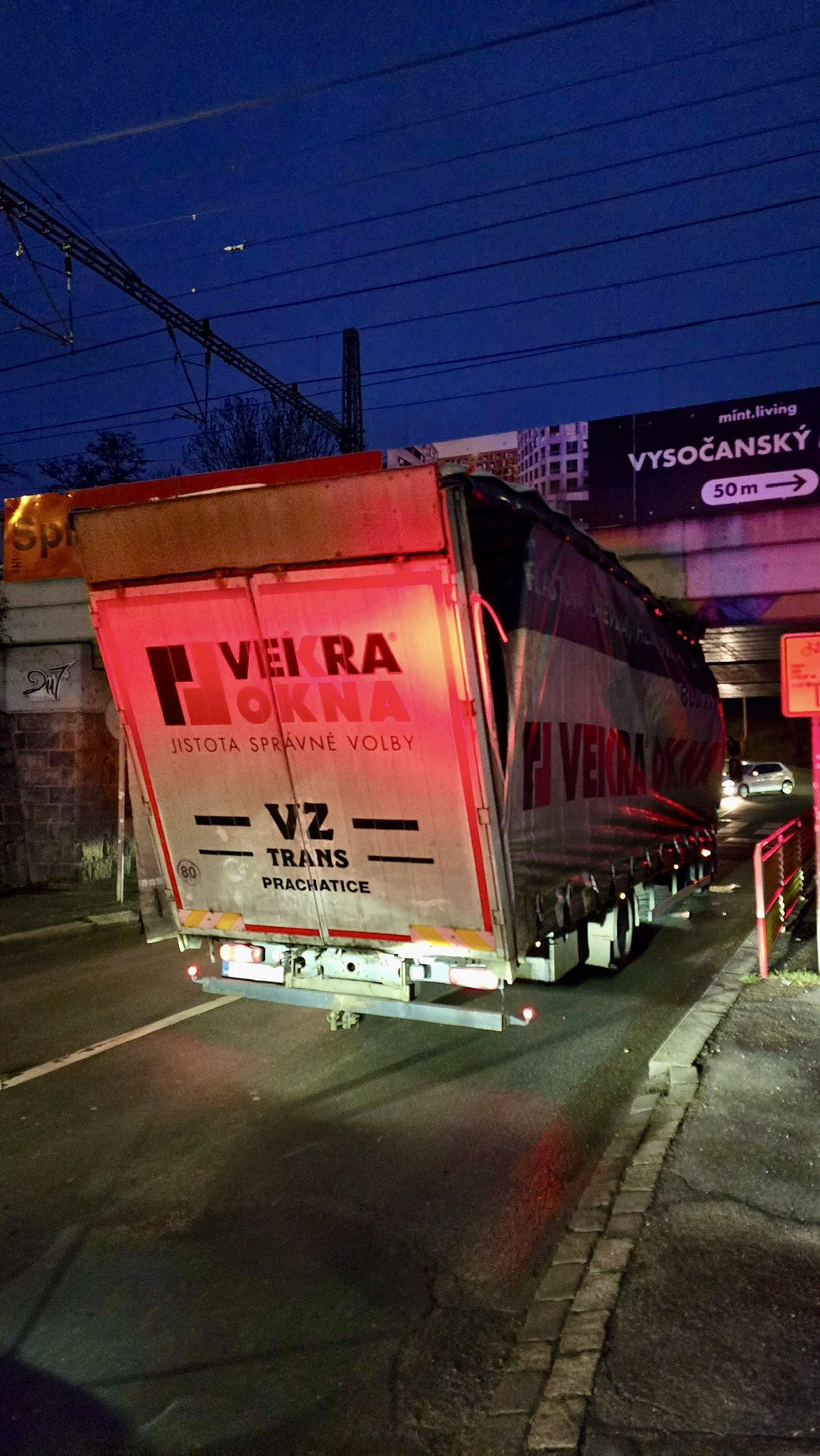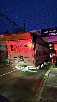 V ulici Jandova zasahují hasiči z Holešovic společně s hasiči Správy železnic u nákladního vozidla, které uvízlo pod mostem. Vozidlo v místě omezuje provoz.