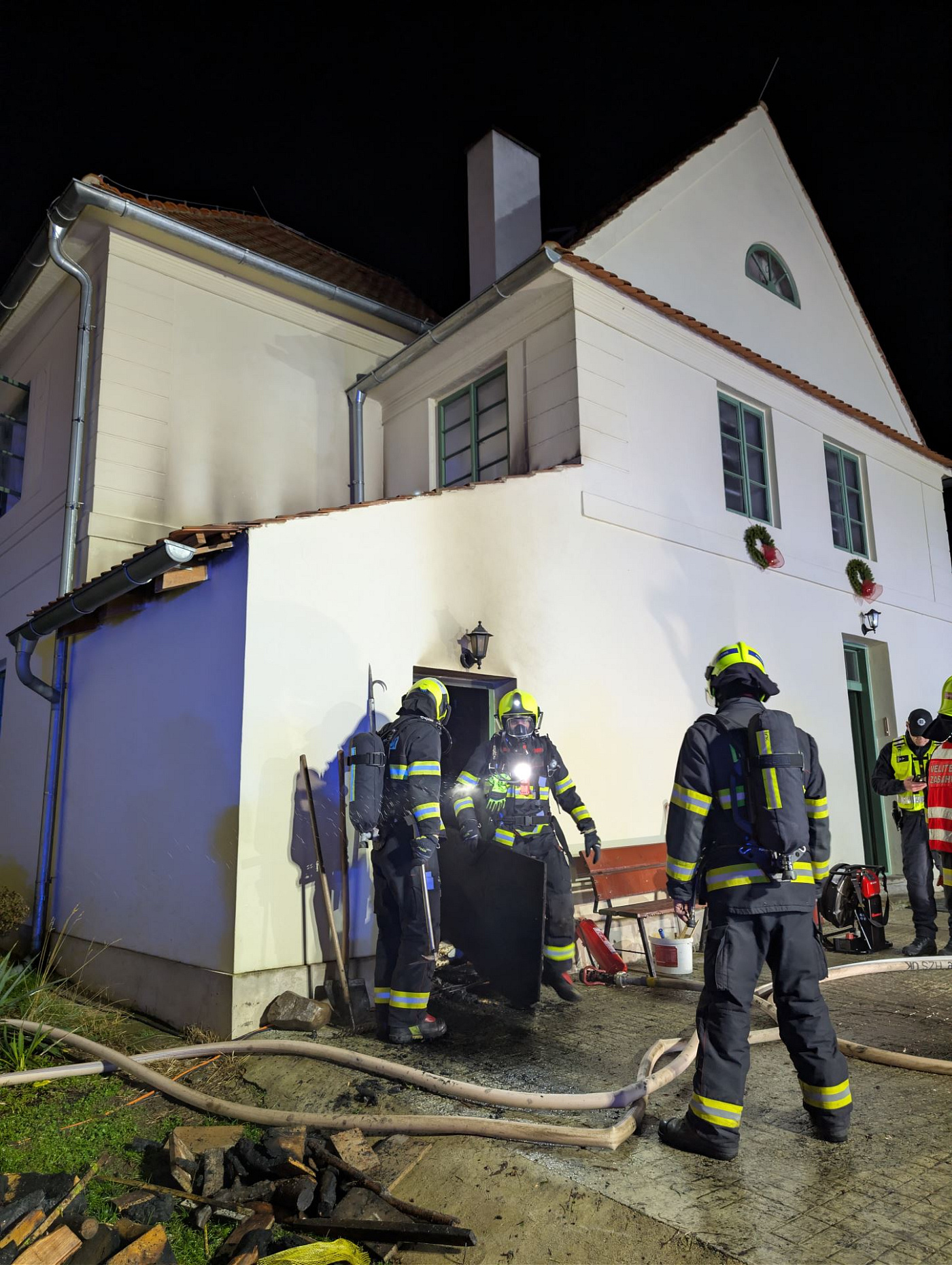 Požár dřeva ve sklepě rodinného domu zlikvidovali hasiči v obci Chbany na Chomutovsku. Po prvotním uhašení hasiči vynosili uskladněné dřevo před budovu a prolili jej vodou.