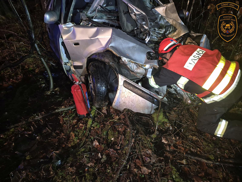 V katastru obce Komňa na Uherskohradišťsku zasahovali v noci na noc hasiči u dopravní nehody osobního vozidla, které sjelo ze silnice a narazilo do stromu.
