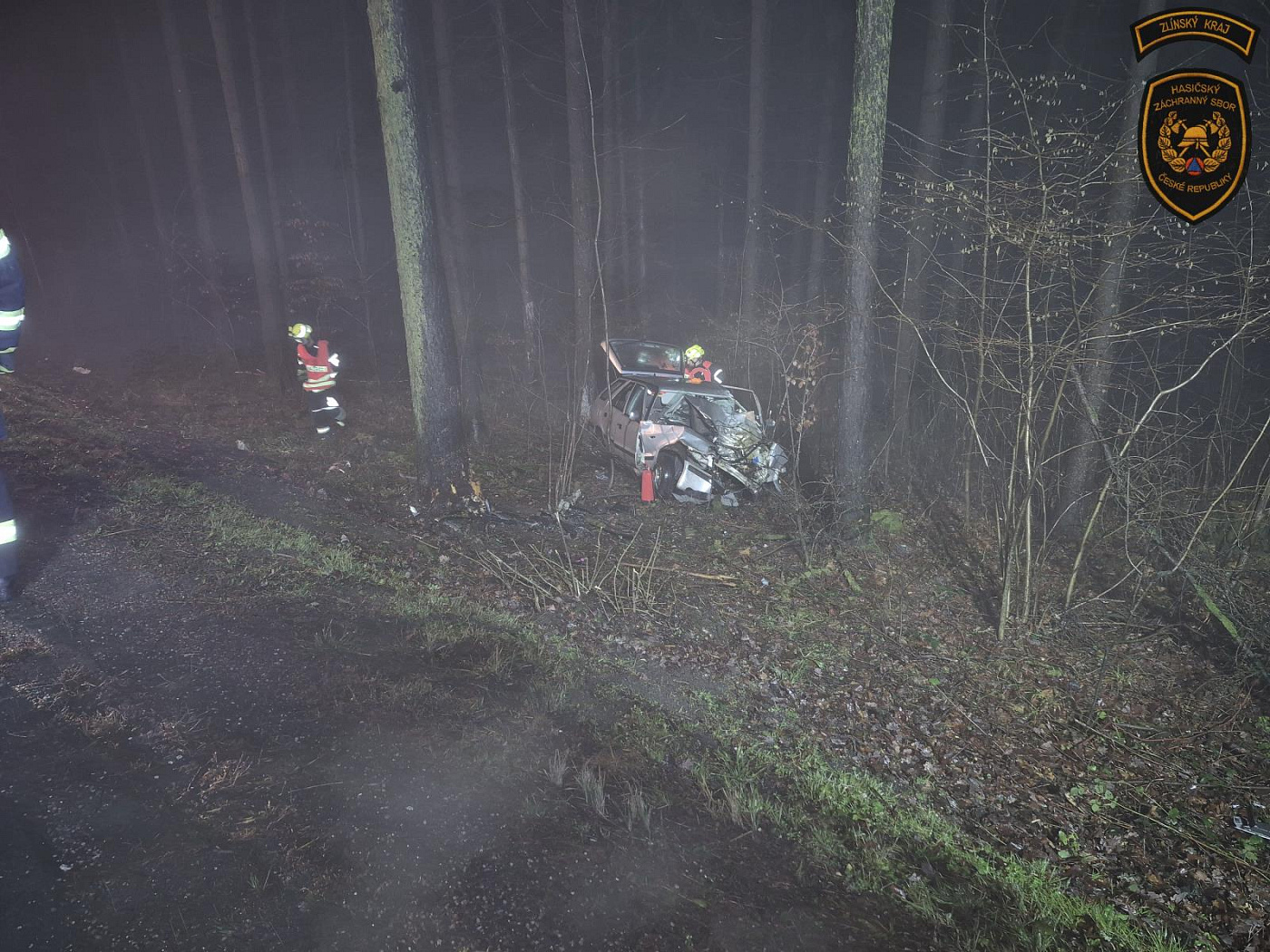 V katastru obce Komňa na Uherskohradišťsku zasahovali v noci na noc hasiči u dopravní nehody osobního vozidla, které sjelo ze silnice a narazilo do stromu.