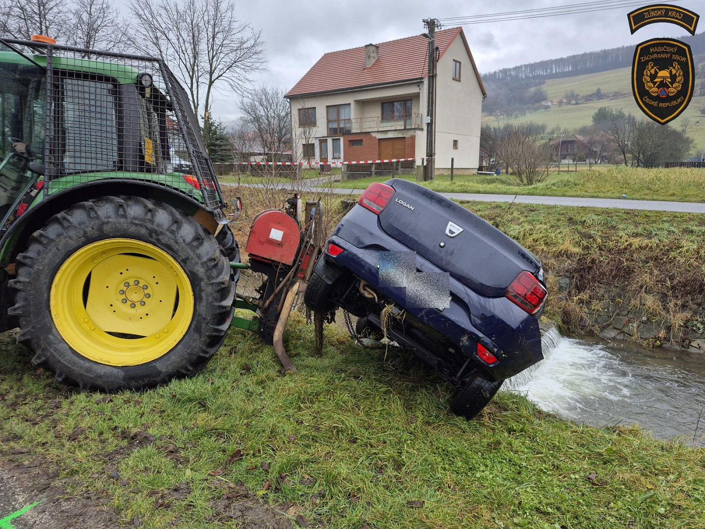 K nehodě byli vysláni profesionální hasiči z Uherského Brodu a dobrovolné jednotky z Březové a Strání. Jakmile to situace dovolila, hasiči pomocí techniky vytáhli vozidlo zpět na cestu a umožnili tak další šetření nehody.