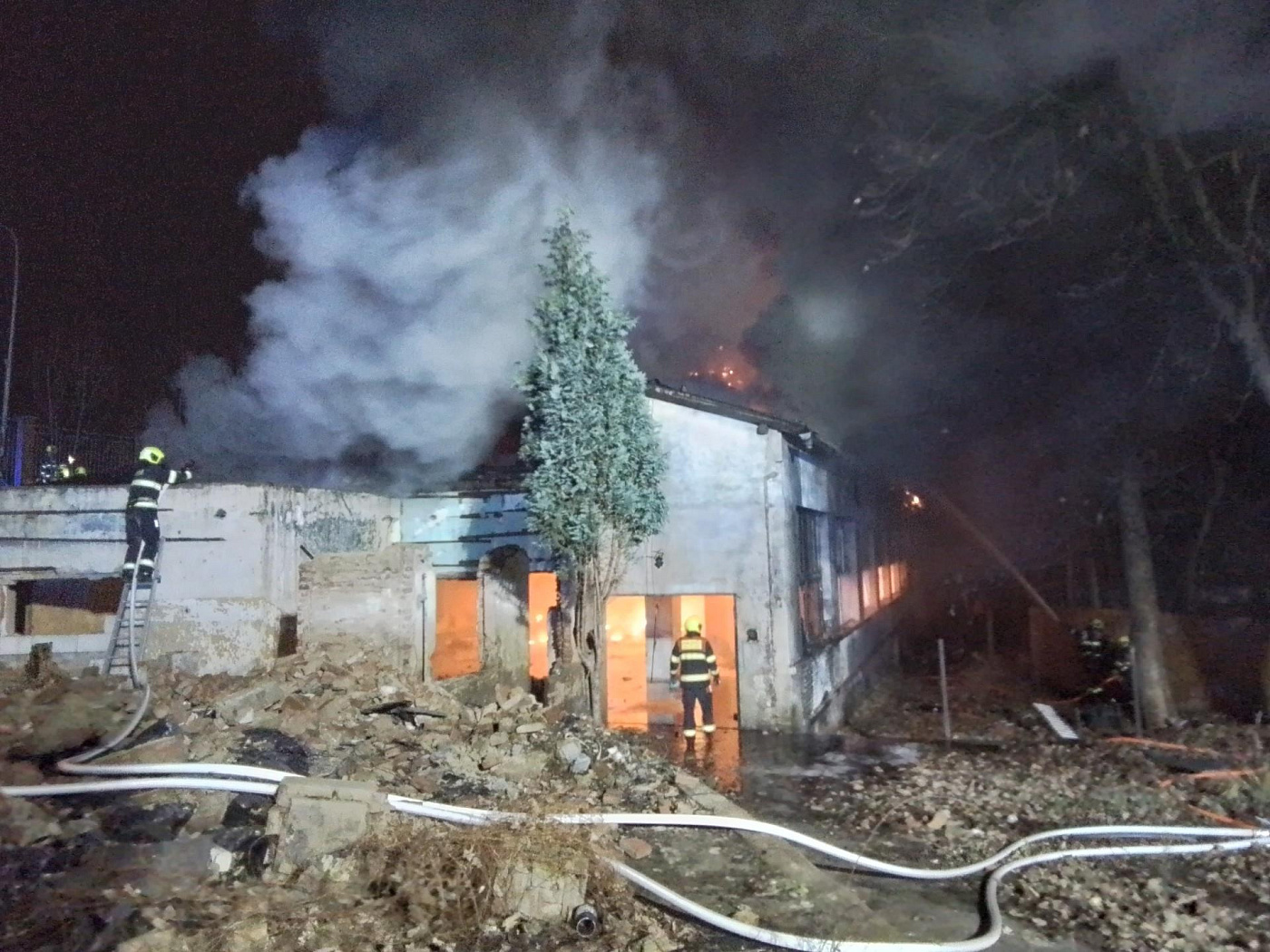 Operační důstojník k místu události postupně vyslal devět jednotek profesionálních a dobrovolných hasičů. V době příjezdu prvních jednotek byla budova o rozměrech 40 × 20 metrů požárem zasažena v plném rozsahu.