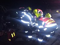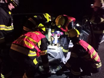 U dopravní nehody tří osobních vozidel a sraženého daňka zasahují profesionální hasiči ze stanice Český Krumlov u Zvíkova. Ve třech vozidlech cestovalo celkem sem osob, z toho dvě osoby byly zraněny.