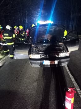 U dopravní nehody tří osobních vozidel a sraženého daňka zasahují profesionální hasiči ze stanice Český Krumlov u Zvíkova. Ve třech vozidlech cestovalo celkem sem osob, z toho dvě osoby byly zraněny.