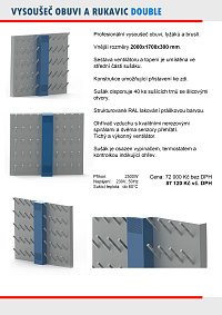KOV Projekt s.r.o. uvádí na trh novou generaci profesionálních sušicích skříní pro rok 2025. Jsou navrženy s důrazem na rychlé a šetrné vysoušení pracovního, záchranářského a hasičského vybavení – od těžkých zásahových obleků a bot až po rukavice a drobné doplňky.