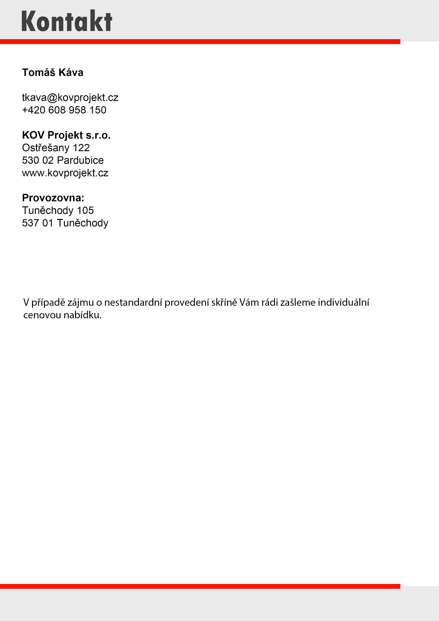 V případě zájmu o standardní či nestandardní provedení skříně vám rádi zašleme individuální cenovou nabídku.