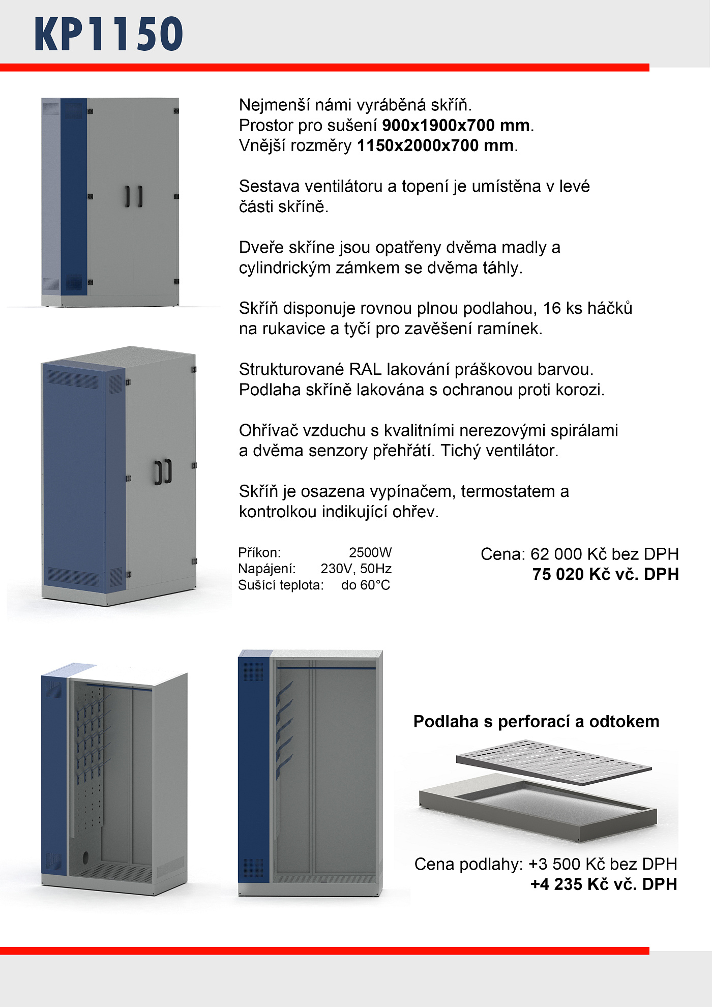 Nabídka začíná u nejmenšího modelu KP1150 (vnitřní prostor 900 mm) a sahá až po největší model KP2000 (vnitřní prostor 2 000 mm).