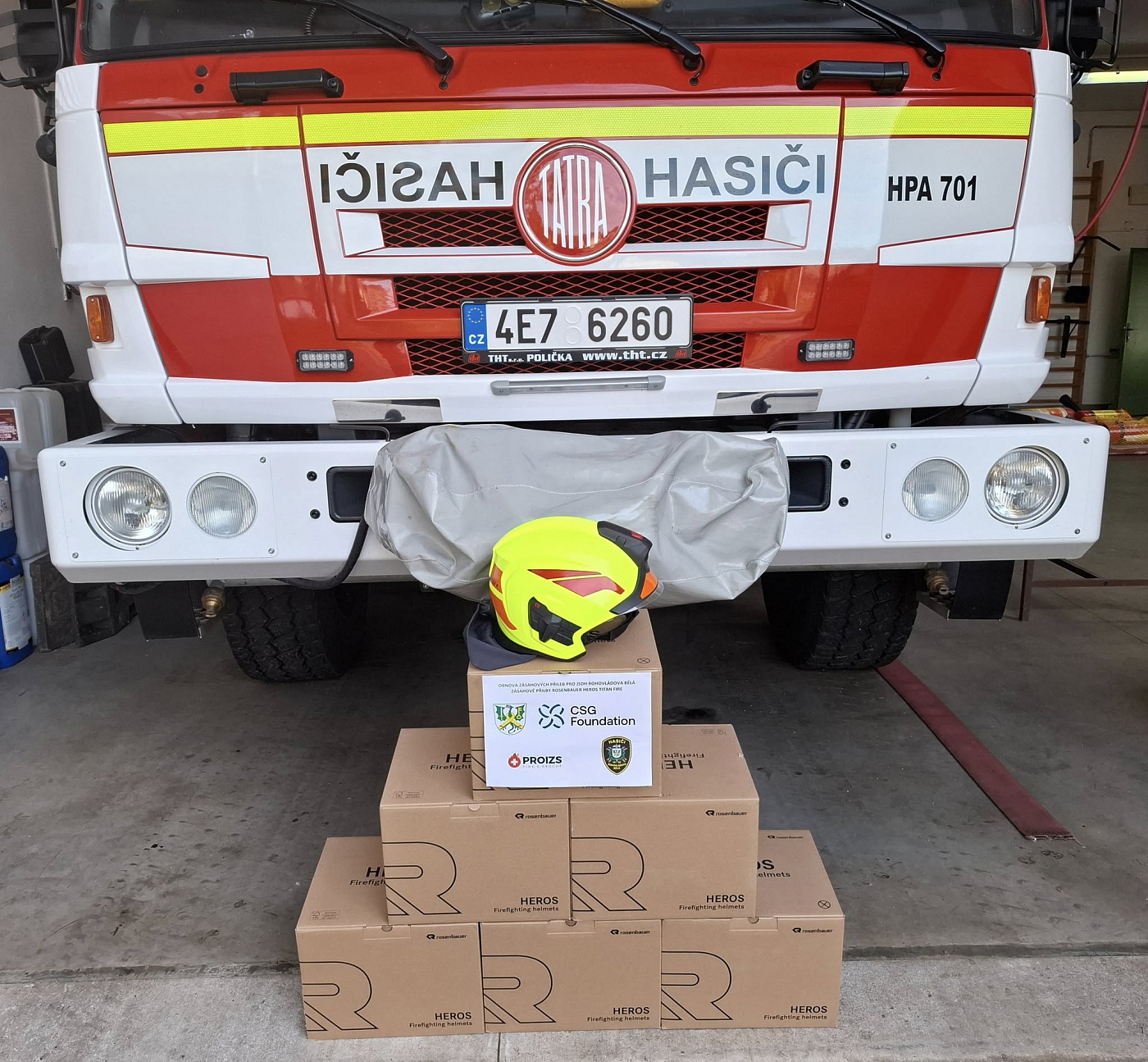 Podpora CSG Nadačního fondu umožnila dokončení obměny zásahových přileb pro hasiči obce Rohovládova Bělá