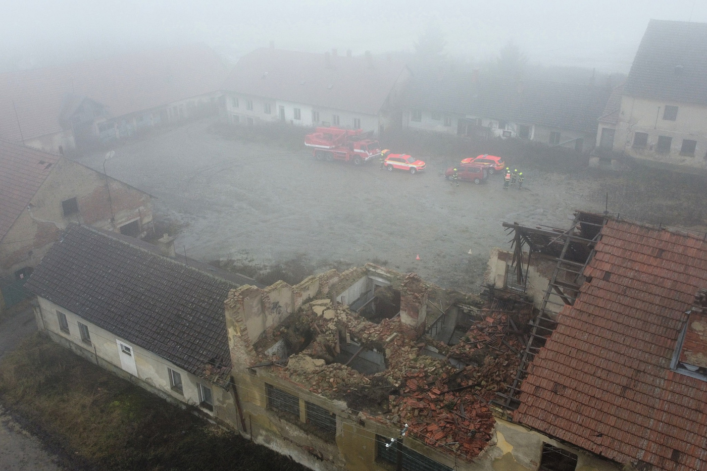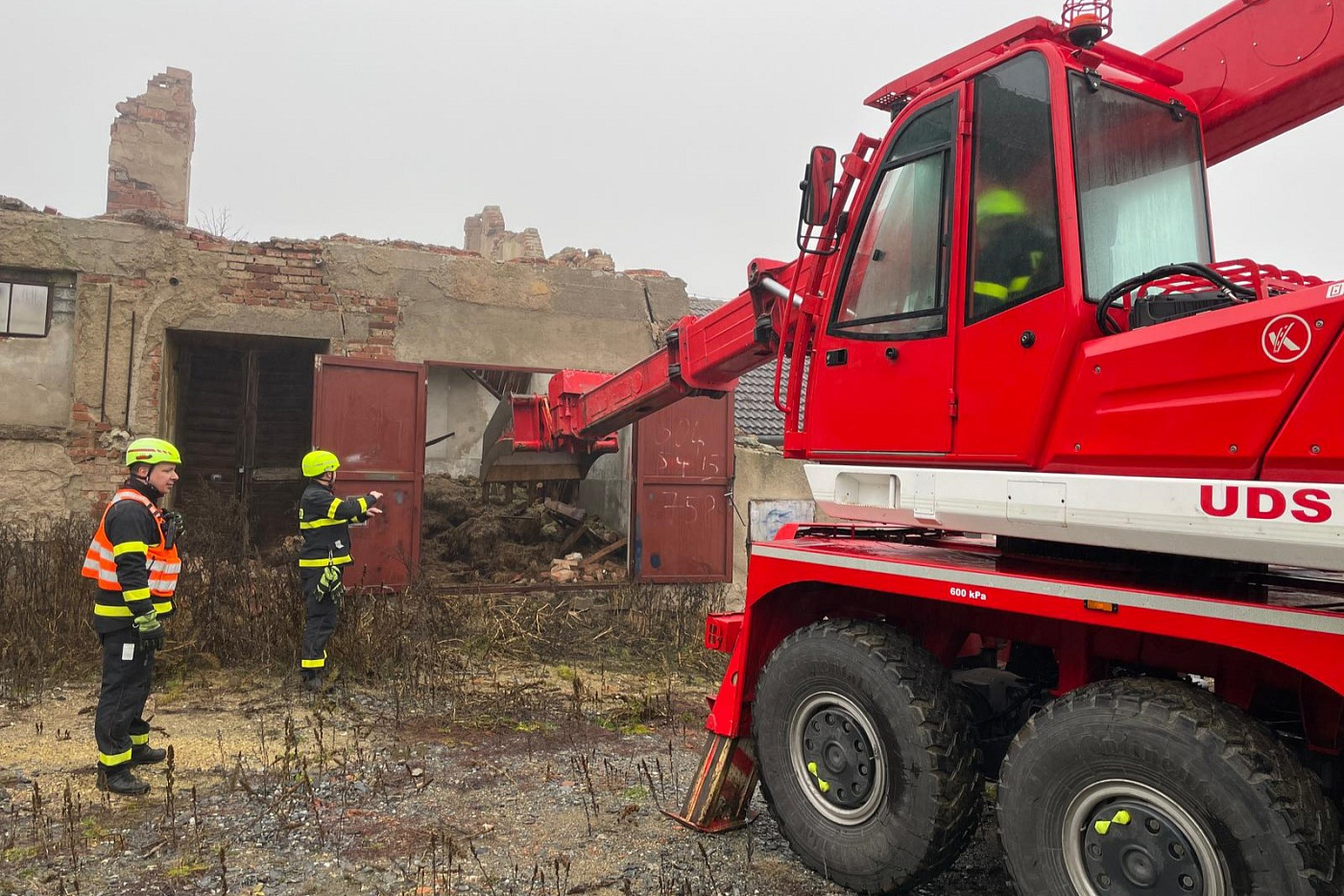 Po nahlášení události byl vyhlášen poplach předurčené jednotce. Na místo vyrazila kynologická skupina, dronová služba i těžká technika – univerzální dokončovací stroj UDS-214 a kolový nakladač Manitou 625. Po příjezdu jednotka převzala úkoly a zahájila práce na zřícené konstrukci.