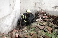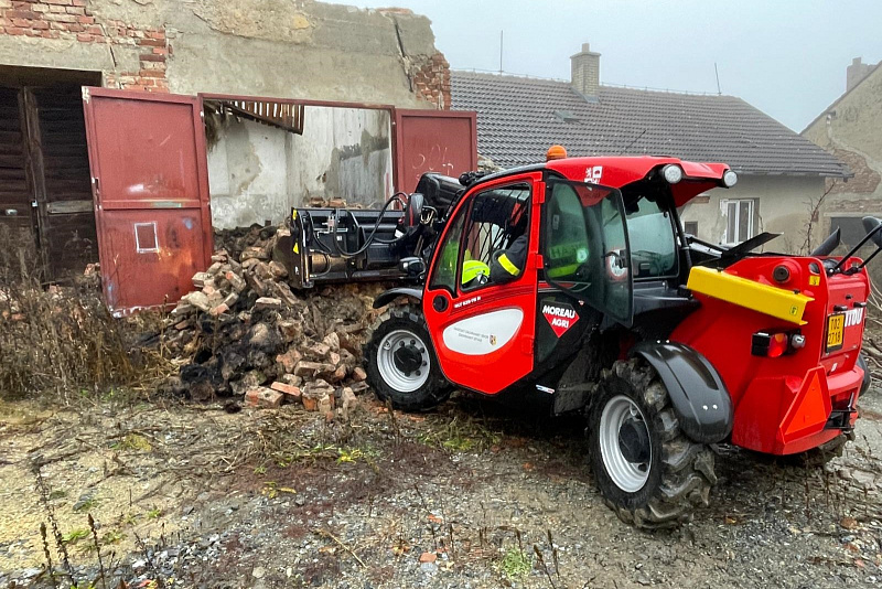 Kynologové zahájili sutinové vyhledávání. Dronová služba poskytla rychlý přehled o rozsahu destrukce. UDS-214 a Manitou zajistily bezpečný pohyb v sutinách a uvolnění prostoru pro záchranu.