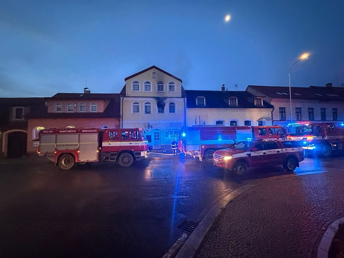 Krátce po sedmé hodině vyjeli hasiči k nahlášenému požáru penzionu v Mnichovicích. Vyhlášen byl druhý stupeň požárního poplachu. Při příjezdu jednotek probíhala samovolná evakuace z objektu.