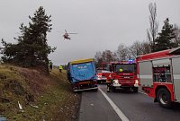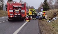 Karlovarští hasiči zasahují u dopravní nehody kamionu a osobního auta na silnici I/6 u odbočky na Olšova Vrata. Po srážce zůstal v osobním autě zaklíněný řidič, přivolaní hasiči museli muže vyprostit s použitím hydraulických vyprošťovacích nástrojů. Po vyproštění byl předaný posádce záchranné služby, hasiči poblíž místa nehody zajistili přistání záchranářského vrtulníku.