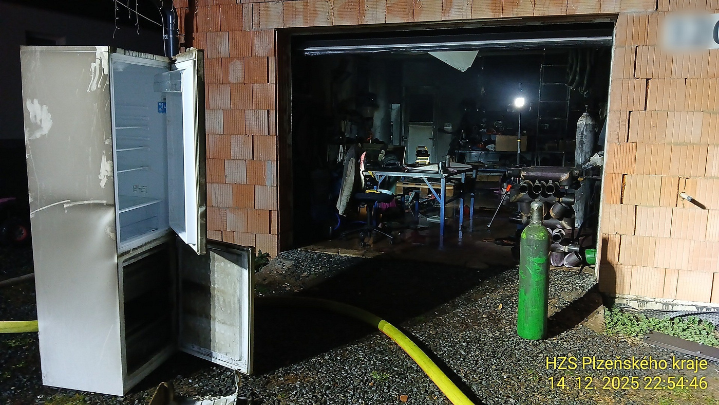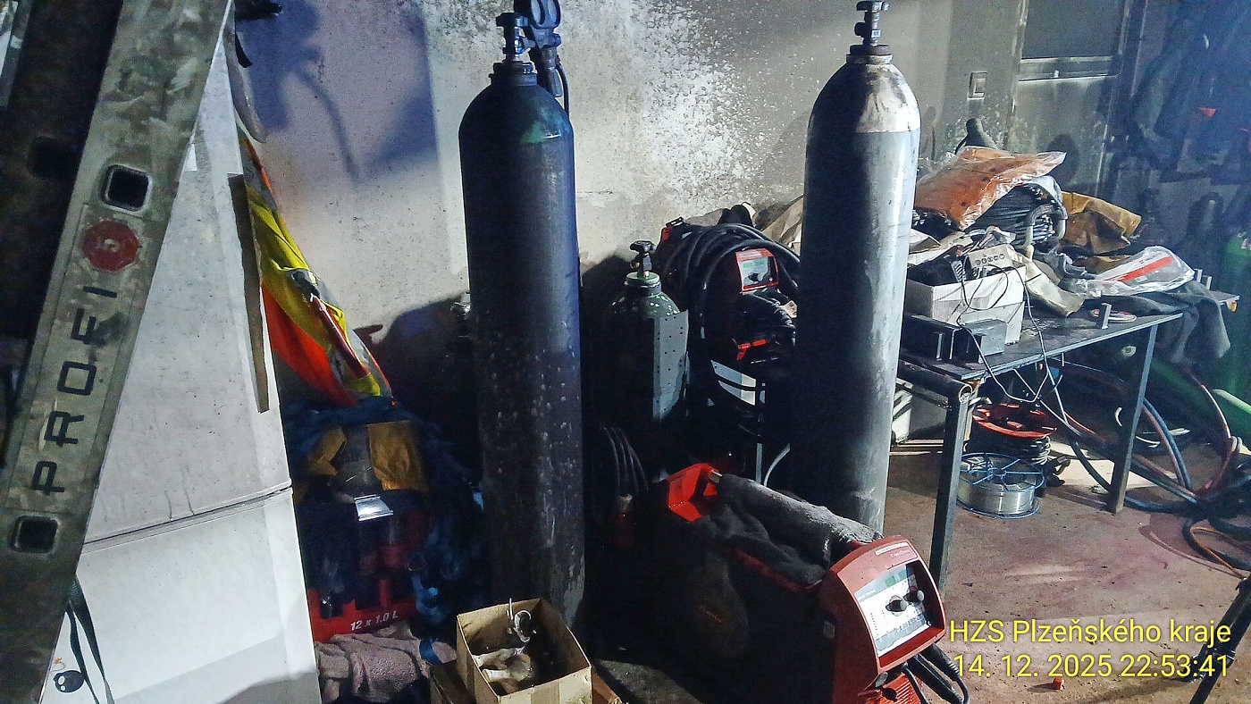 Tlakové lahve zkomplikovaly zásah u požáru garáže v Domažlicích