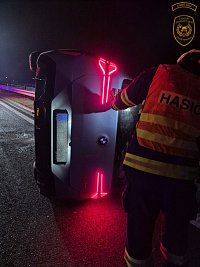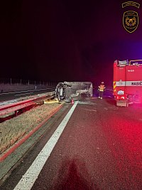 Velitel zásahu po příjezdu potvrdil, že se jednalo o nehodu vozidla, které skončilo převrácené na bok a blokovalo levý jízdní pruh. Řidič se v době příjezdu jednotek již nacházel mimo vozidlo a byl předán do péče zdravotnické záchranné služby.