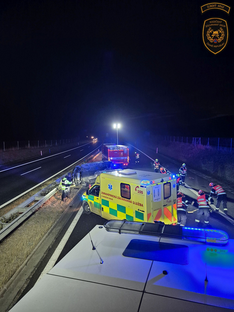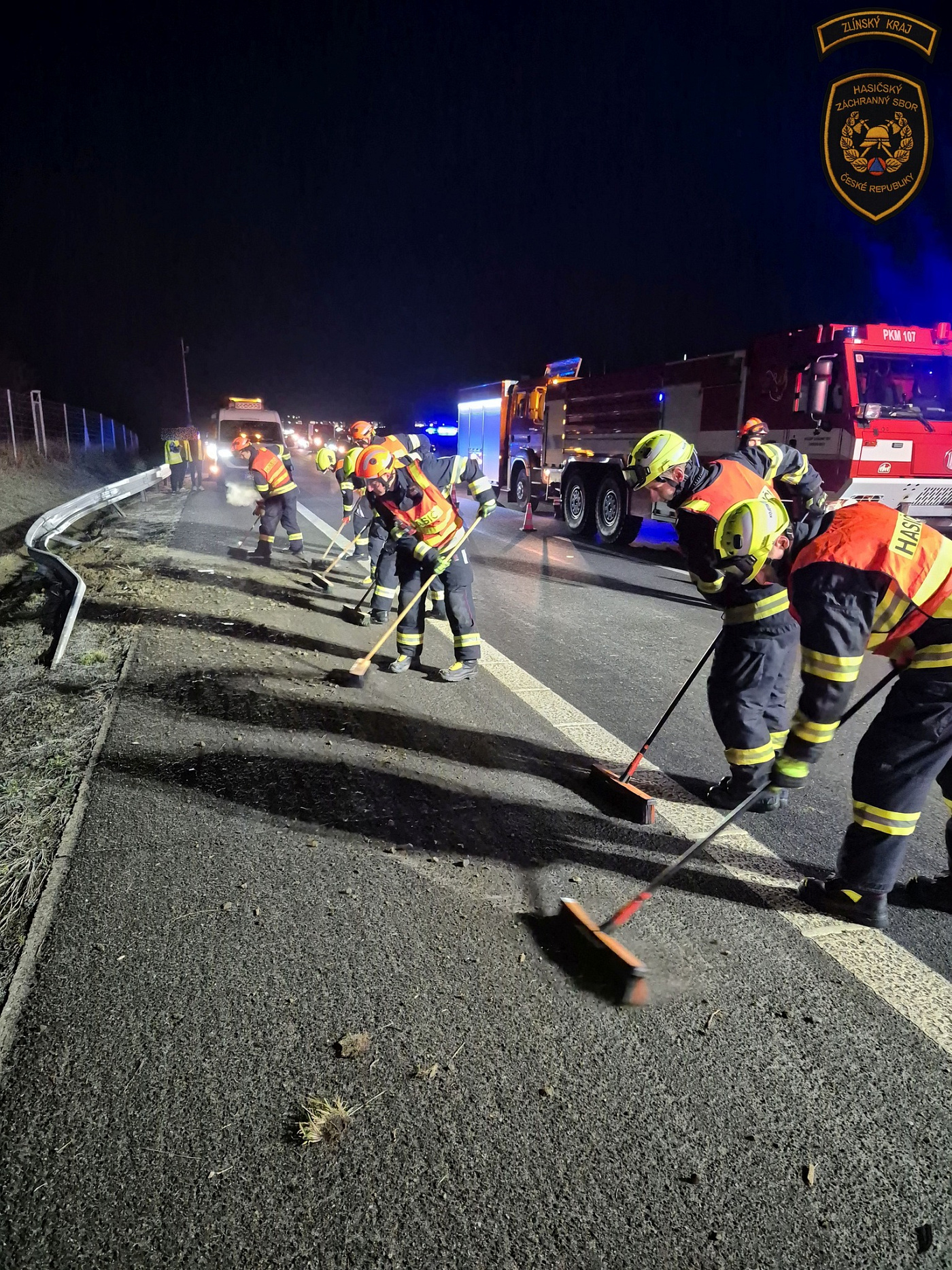 Událost se obešla bez nutnosti vyprošťování osob. Provoz na dálnici byl po dobu zásahu omezen.