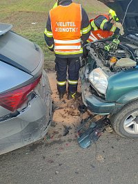 V Lubenci na Lounsku, místní části Ležky, zasahují hasiči u ohlášené dopravní nehody se zraněním. Hasiči zajistili místo nehody.