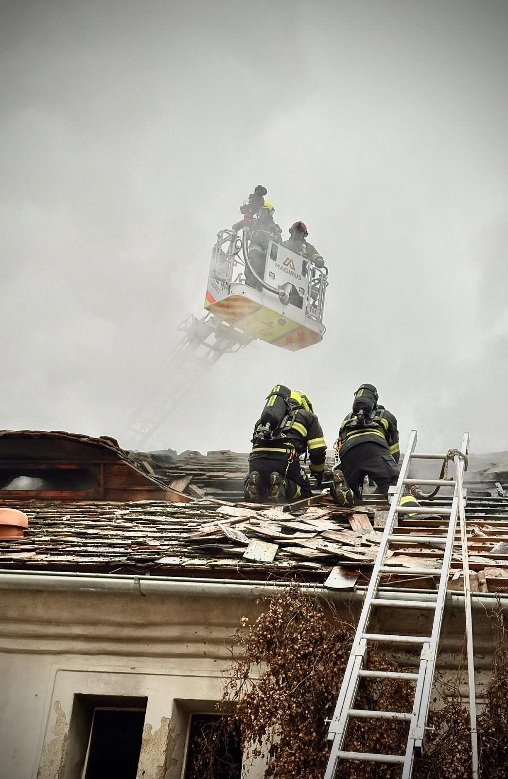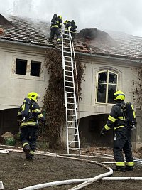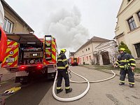 Požár na půdě dvoupodlažní budovy v Českých Kopistech na Litoměřicku likvidovalo sedm jednotek hasičů