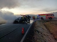 V ranních hodinách zasahovali profesionální jednotka z Vodňan a jedna jednotka SDH u Chluman u nehody dvou aut. Po střetu jedno z aut začalo hořet. Uvnitř aut nikdo v době příjezdu hasičů již nebyl, nevyprošťovalo se. ZZS si převzala dvě osoby.