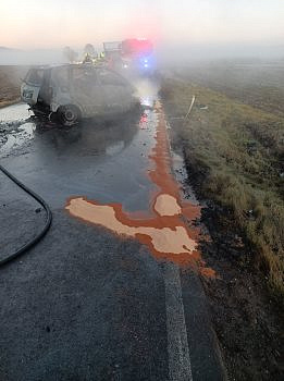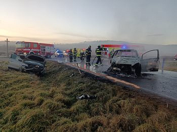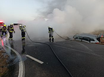V ranních hodinách zasahovali profesionální jednotka z Vodňan a jedna jednotka SDH u Chluman u nehody dvou aut. Po střetu jedno z aut začalo hořet. Uvnitř aut nikdo v době příjezdu hasičů již nebyl, nevyprošťovalo se. ZZS si převzala dvě osoby.
