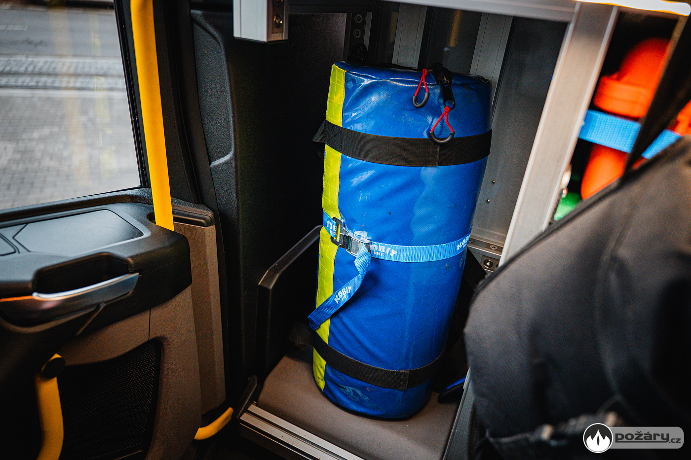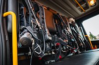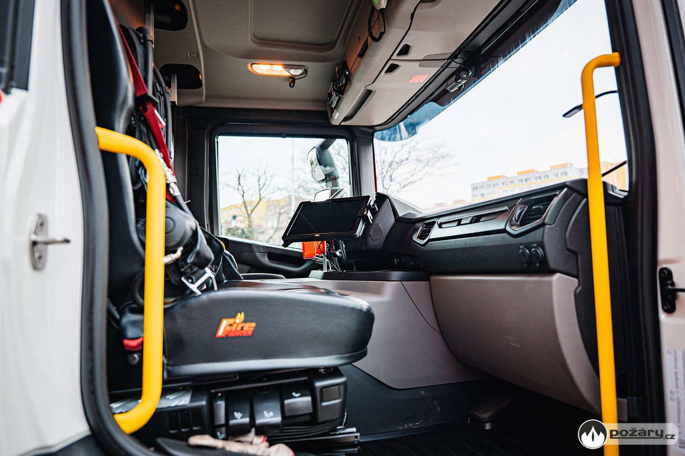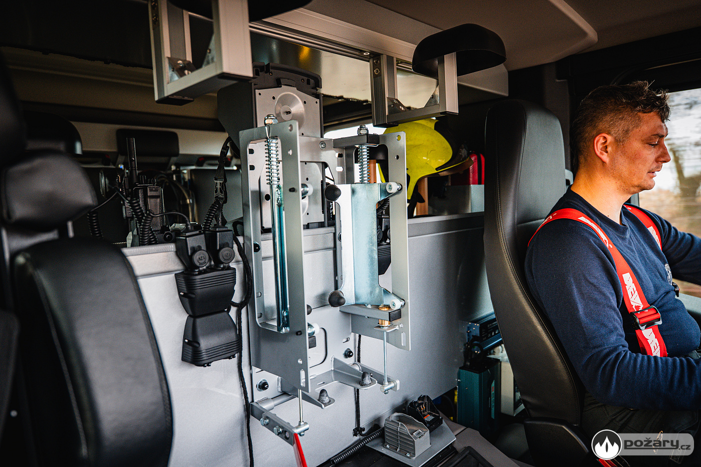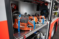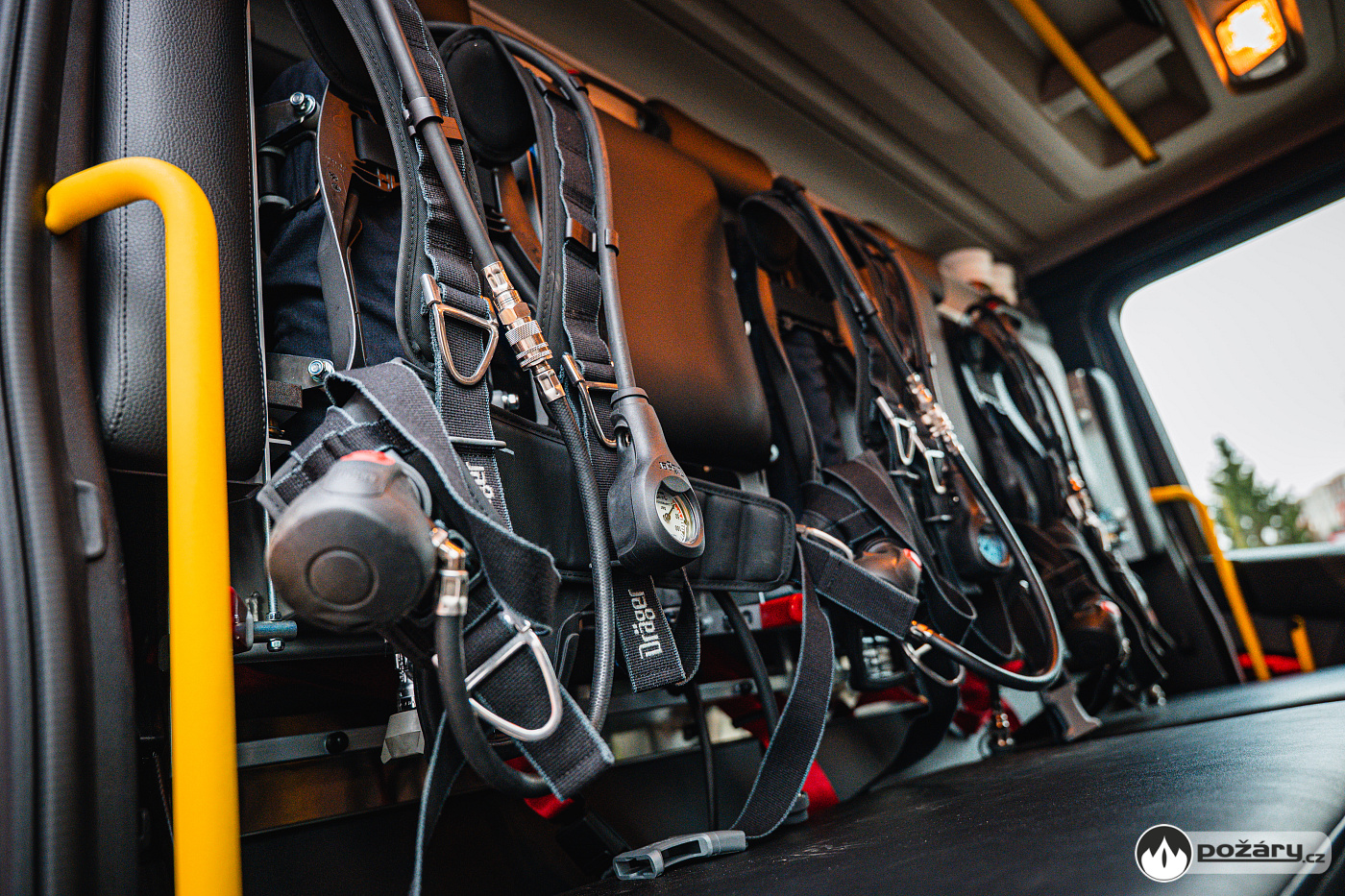 V opěradlech zadní řady sedadel a opěradle sedadla velitele najdeme integrované držáky dýchacích přístrojů. V dobíjecích úchytech jsou uloženy ruční svítilny i ruční radiostanice. V dosahu velitele je výjezdový tablet, strojník má ve svém zorném poli displej infortainmentu z výstupem z couvací kamery a tablet pro obsluhu nástavby.