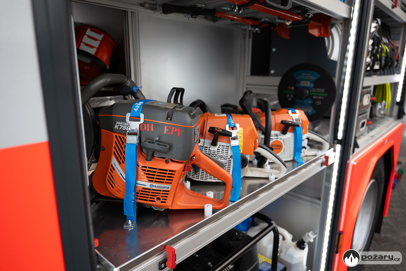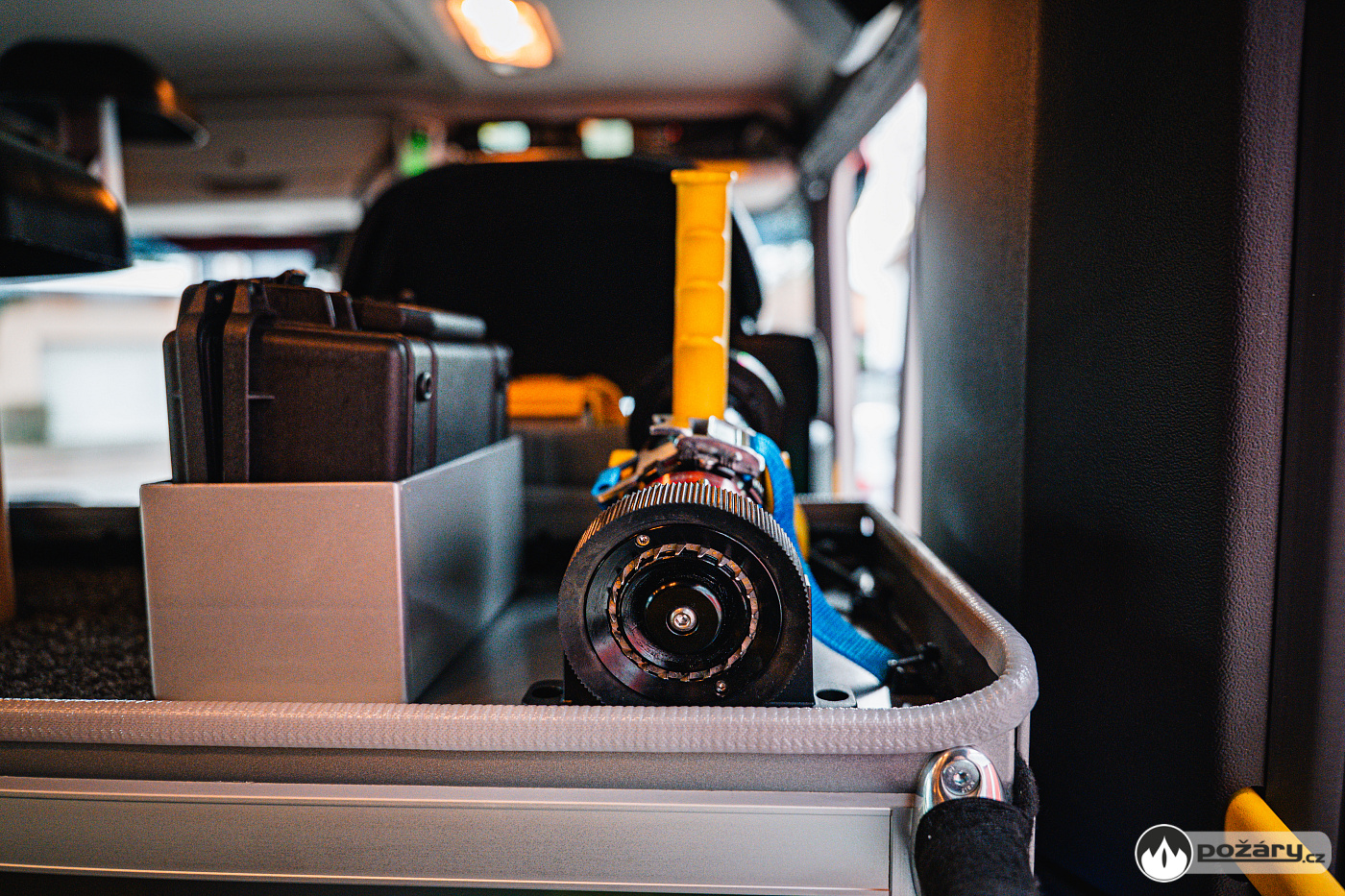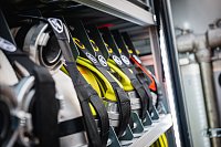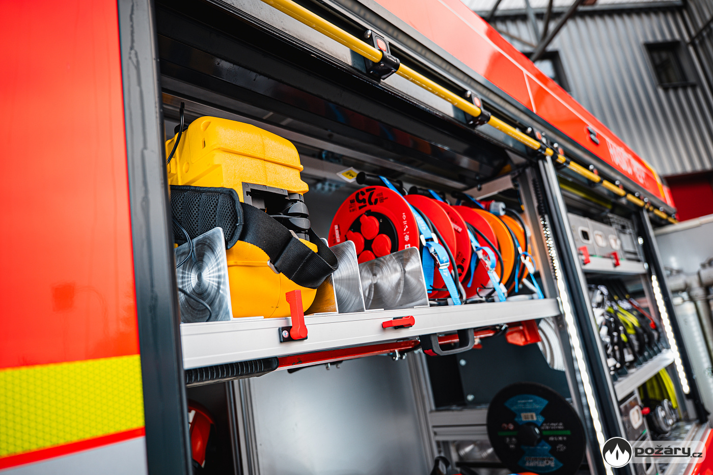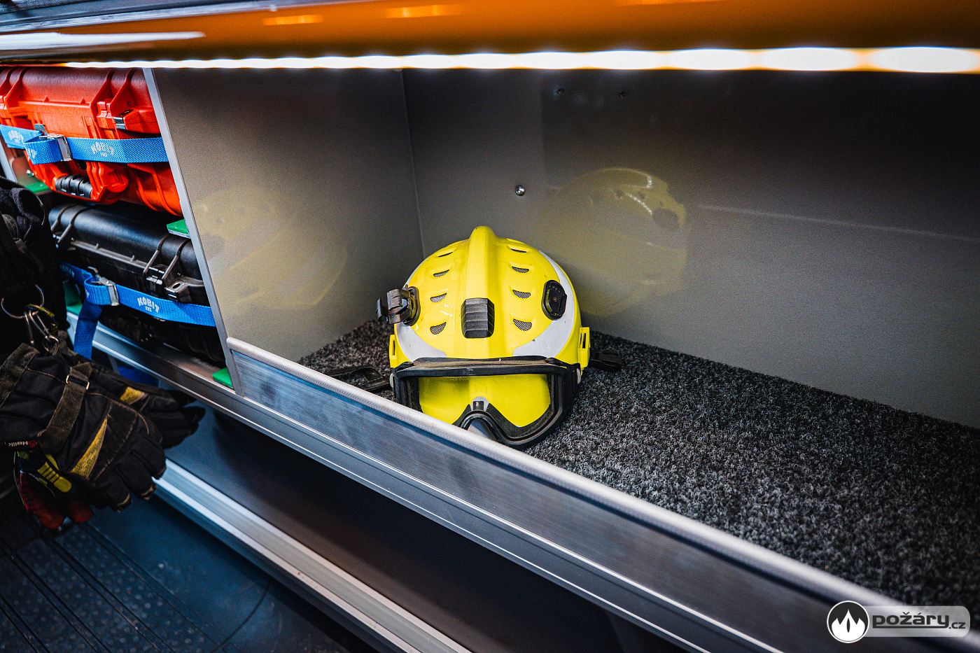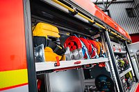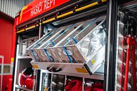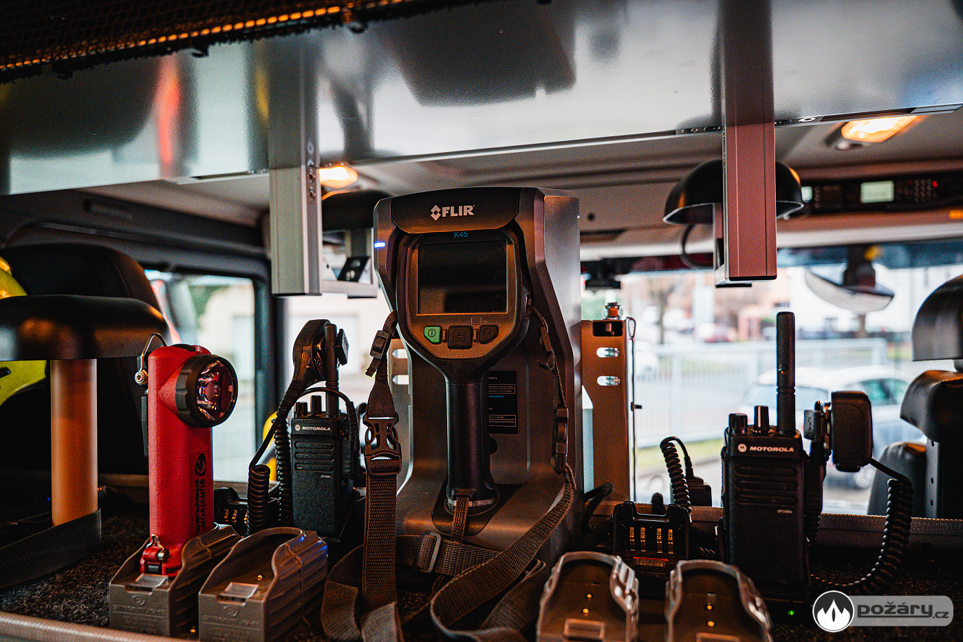 V opěradlech zadní řady sedadel a opěradle sedadla velitele najdeme integrované držáky dýchacích přístrojů. V dobíjecích úchytech jsou uloženy ruční svítilny i ruční radiostanice. V dosahu velitele je výjezdový tablet, strojník má ve svém zorném poli displej infortainmentu z výstupem z couvací kamery a tablet pro obsluhu nástavby.