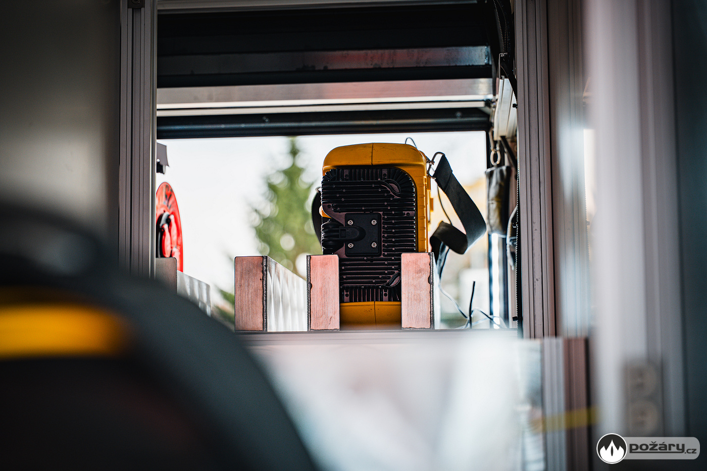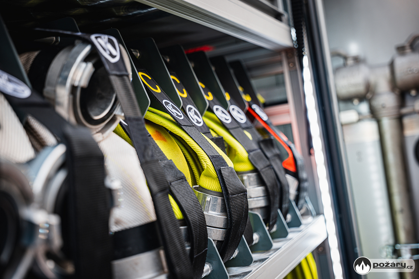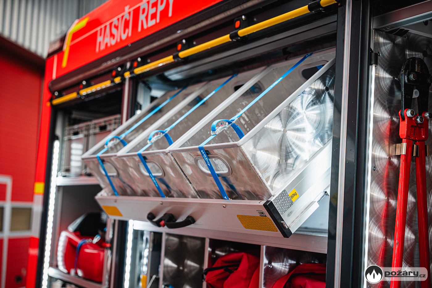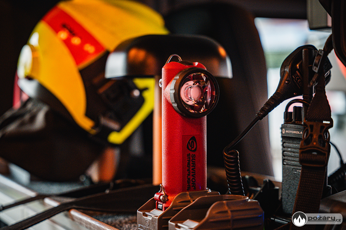 V opěradlech zadní řady sedadel a opěradle sedadla velitele najdeme integrované držáky dýchacích přístrojů. V dobíjecích úchytech jsou uloženy ruční svítilny i ruční radiostanice. V dosahu velitele je výjezdový tablet, strojník má ve svém zorném poli displej infortainmentu z výstupem z couvací kamery a tablet pro obsluhu nástavby.