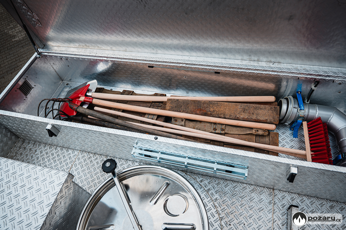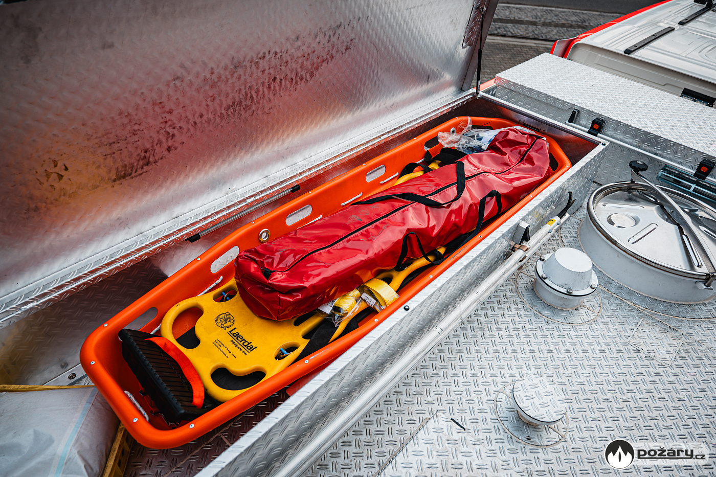 Rozměrné příslušenství je uloženo na střeše nástavby – nechybí zde nosítka ani ženijní nářadí.