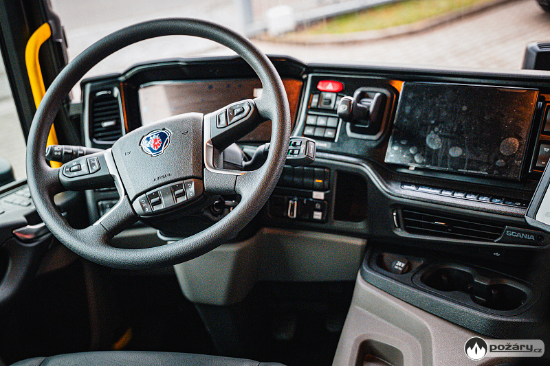 Scania ve své nádrži na hasivo veze 3 000 litrů vody a 180 litrů pěnidla. Čerpací zařízení dosahuje jmenovitého výkonu 2 000 litrů za minutu při tlaku 10 barů.