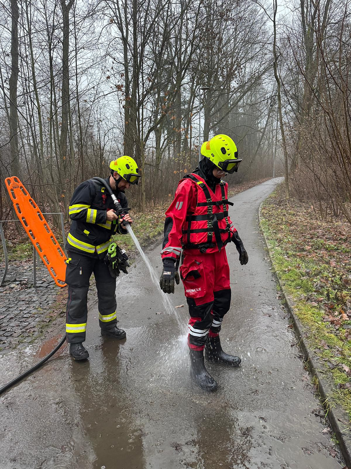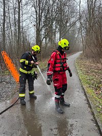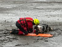 K záchraně psa v bahně rybníku v obci Břve vyjeli profesionální hasiči z Kladna a dobrovolní z Hostivice. Pes byl uvězněný v bahně, zhruba 50 metrů od břehu a nemohl se sám dostat ven. Hasiči v suchých oblecích pomocí nastavovacího žebříku a desky psa vytáhli a předali majiteli.