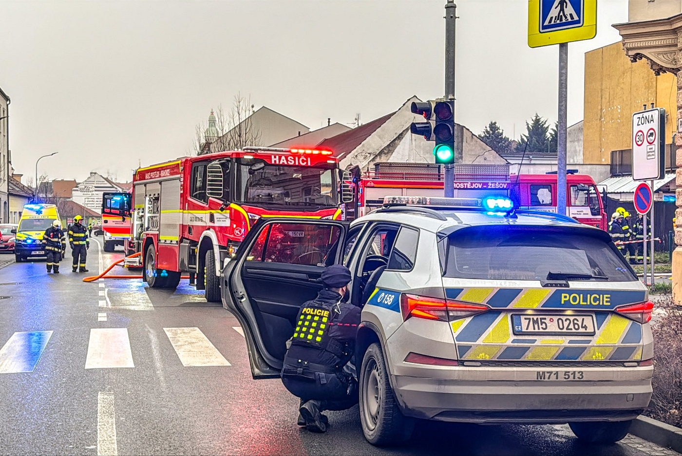 U požáru budovy zasahují hasiči v Prostějově. Při příjezdu jednotek bylo 2. patro objektu plně zasaženo plameny. Jednu zraněnou osobu předali do péče Zdravotnické záchranné služby. Požár hasiči lokalizovali vnitřním i vnějším zásahem za využití výškové techniky.